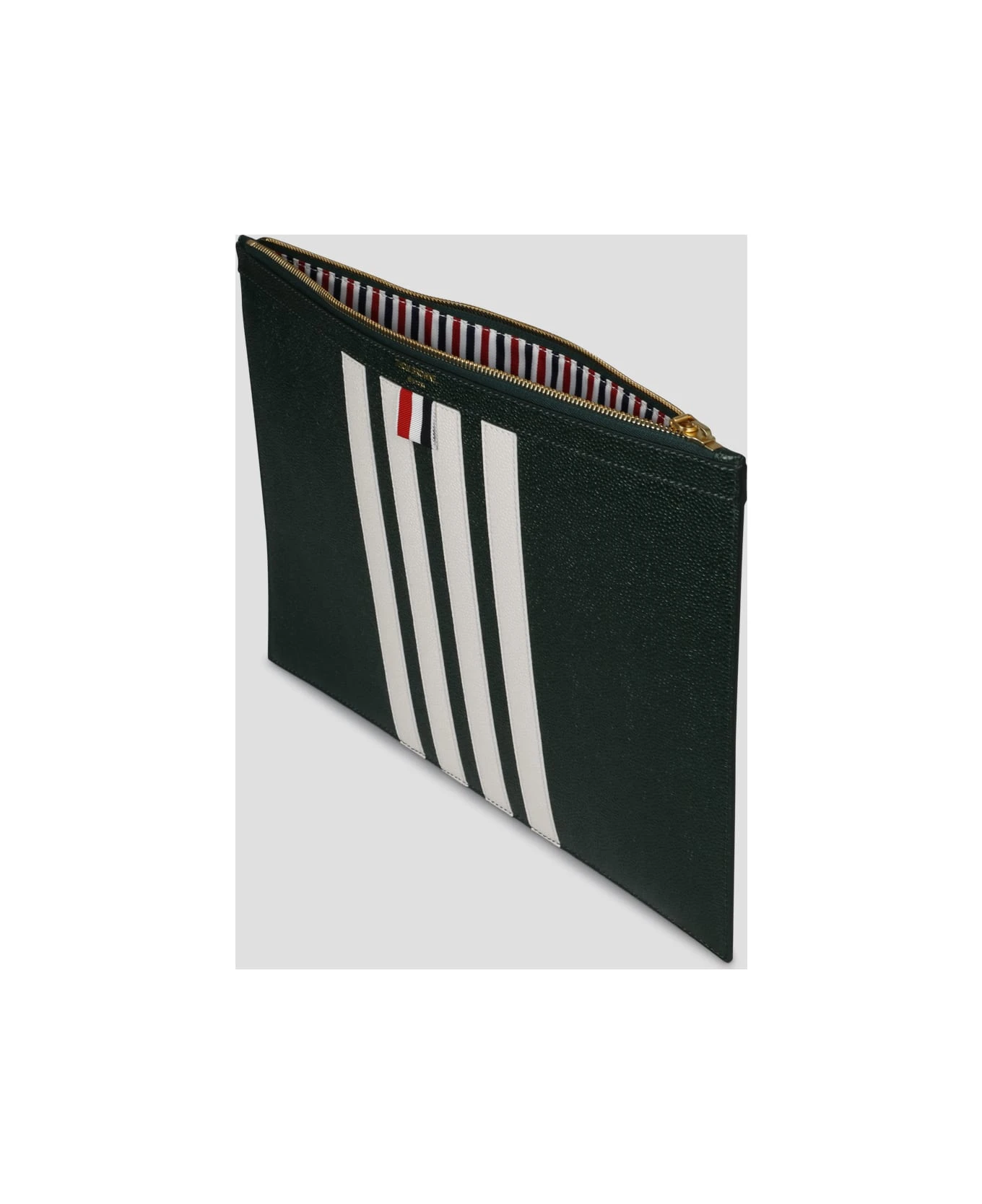 Thom Browne Medium document holder , in grained leather with contrasting 4bar patch on the front. – FW23