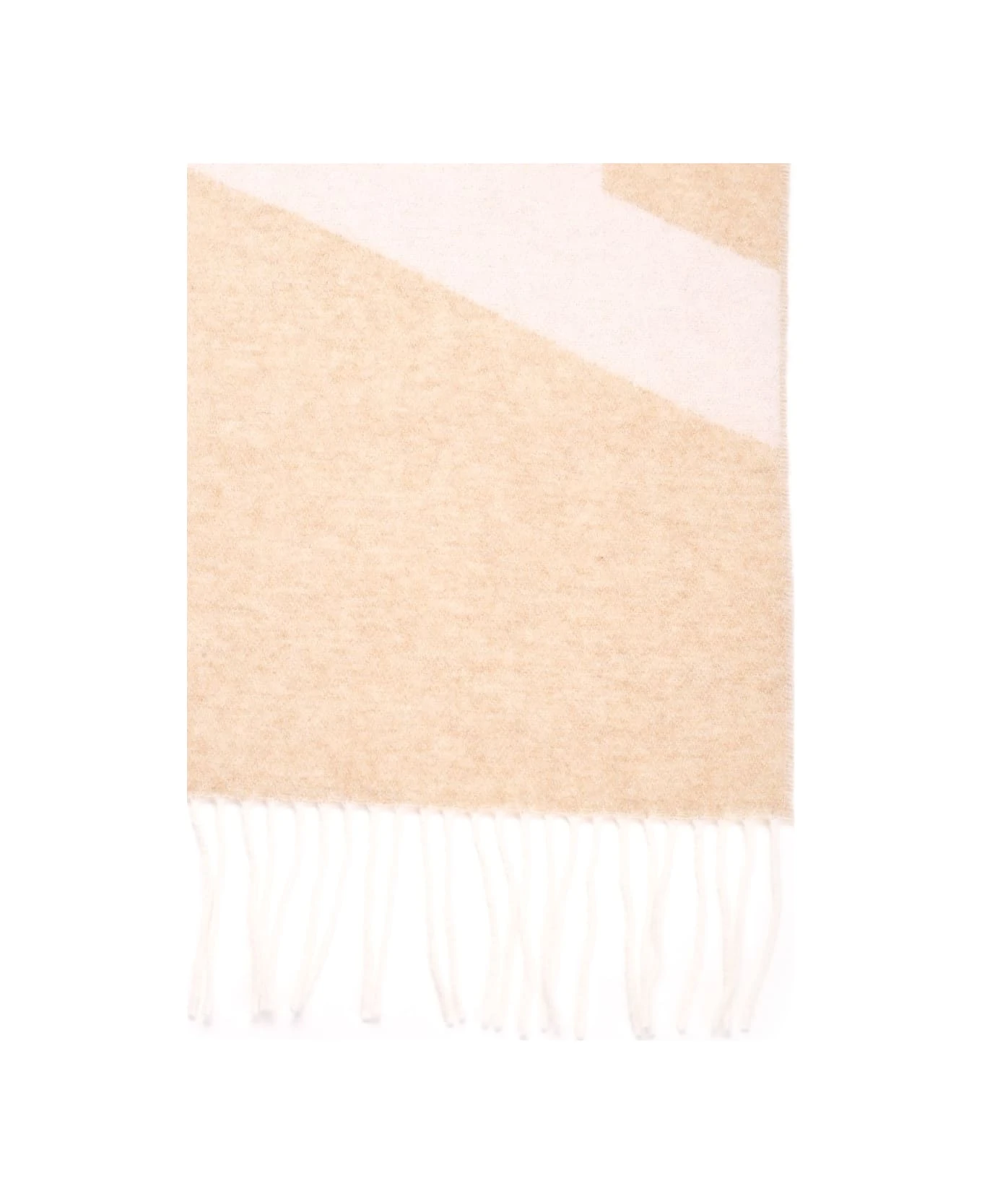 Beige “Malò” scarf from A. P. C. in jacquard wool blend with white logo, fringes at the ends.
