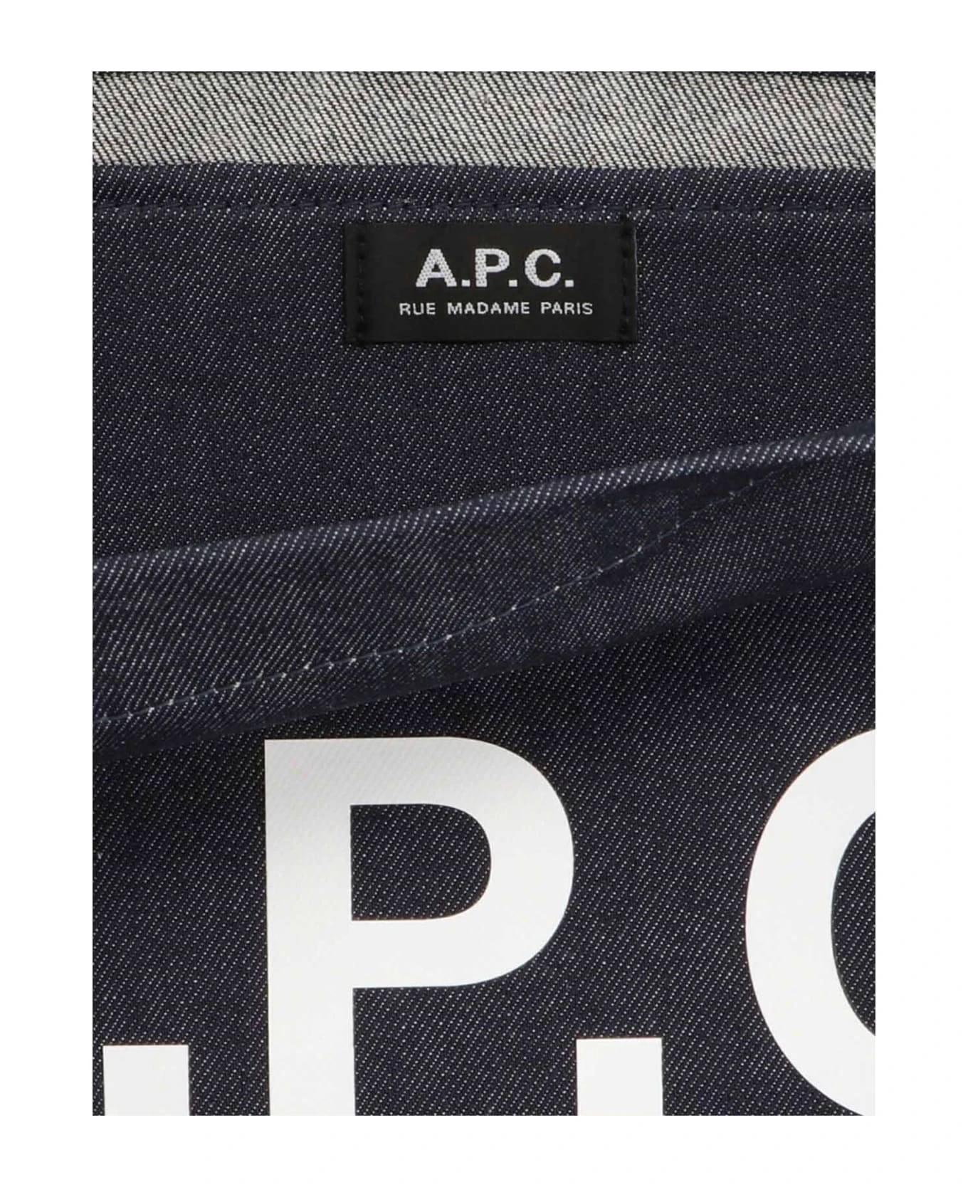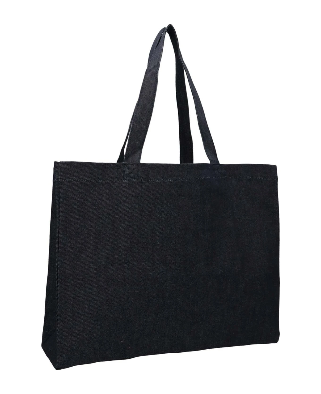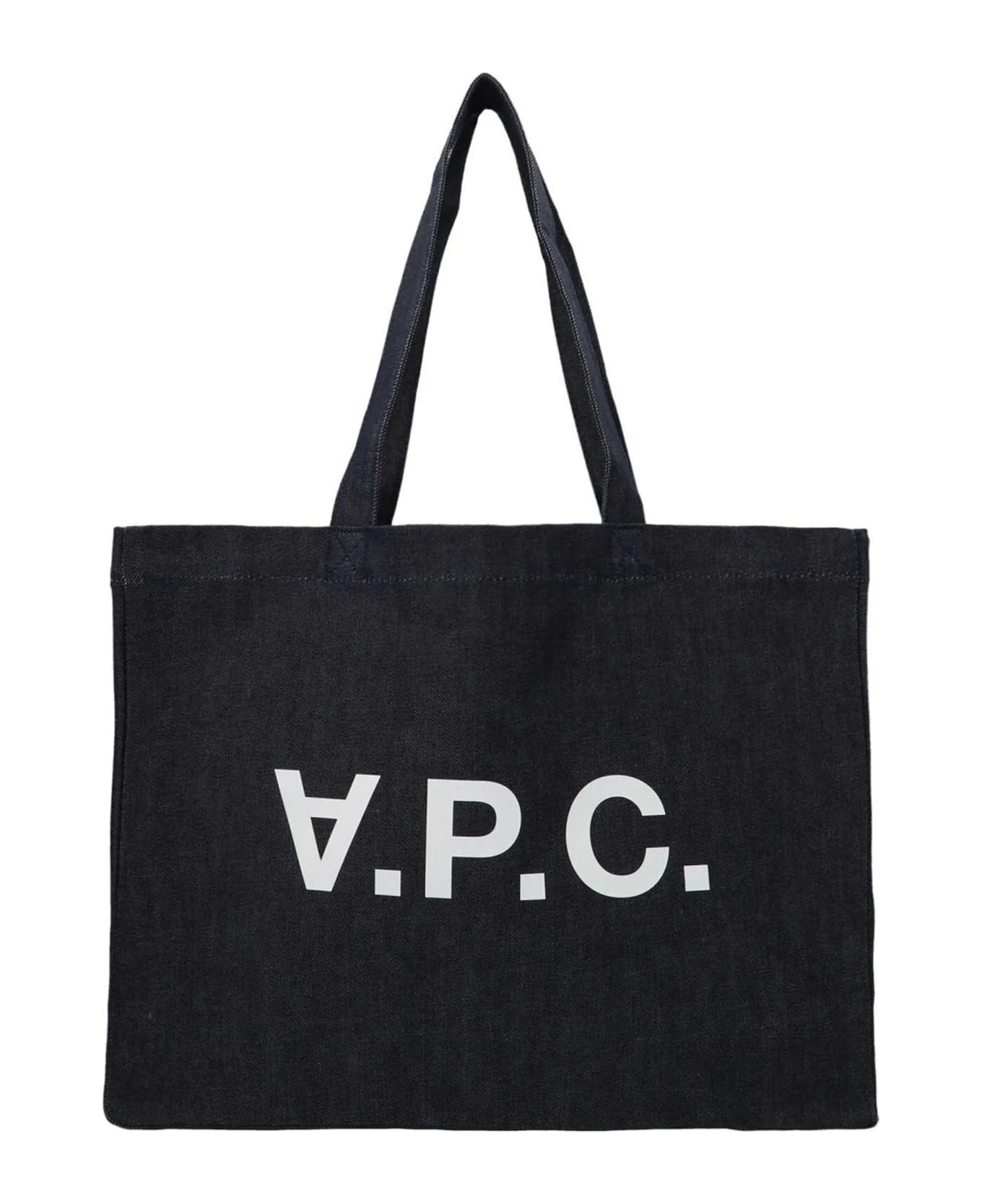 ‘Daniela’ denim cotton shopping bag with front contrast logo print and a double handle.