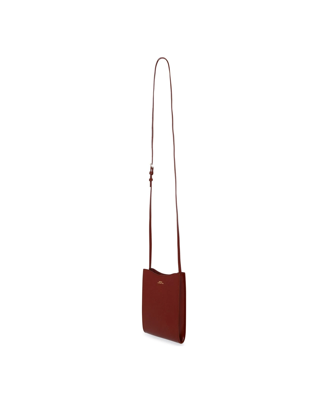 A. P. C. logo on the front, adjustable leather shoulder strap, inner slit pocket 13 x 18. 5 x 2. 5 cm