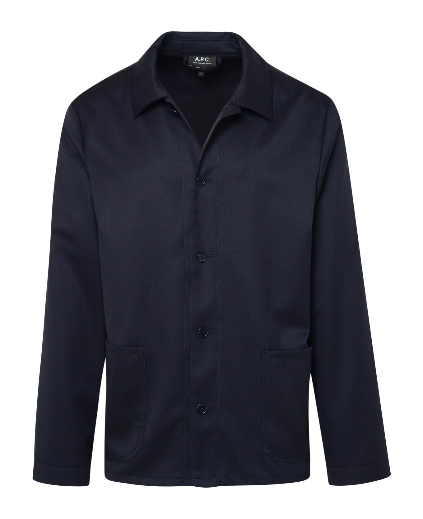 Pointed collar, front pockets, front button closure