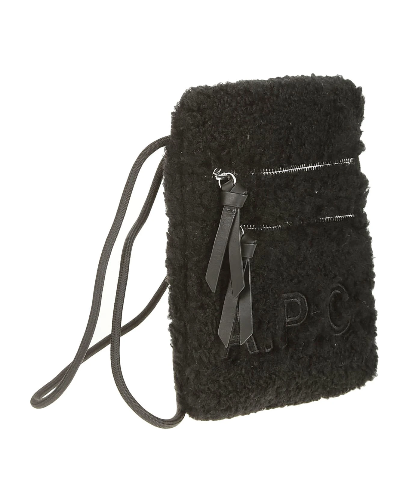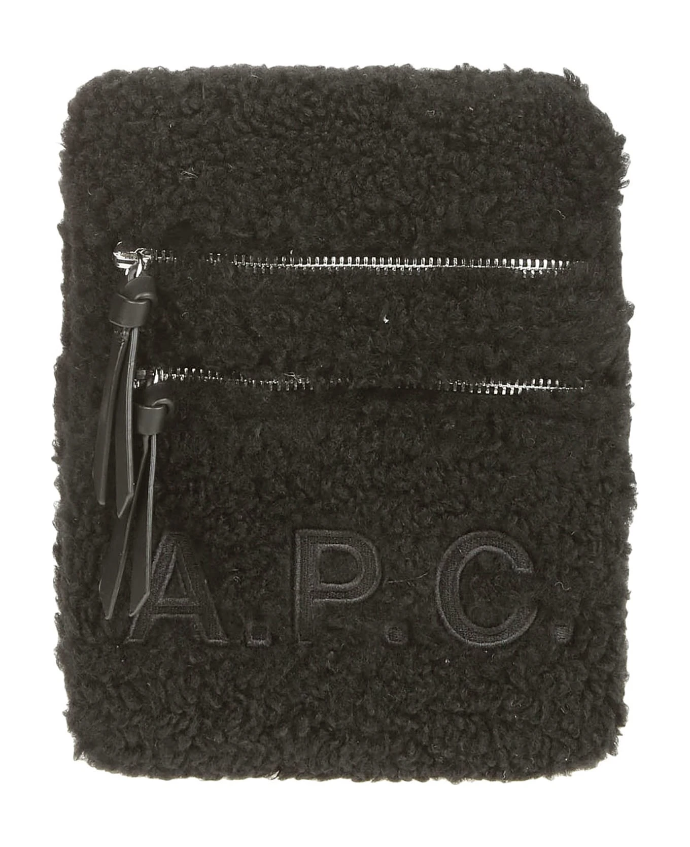 APC Shoulder strap in black synthetic fabric, front zip, logo detail.