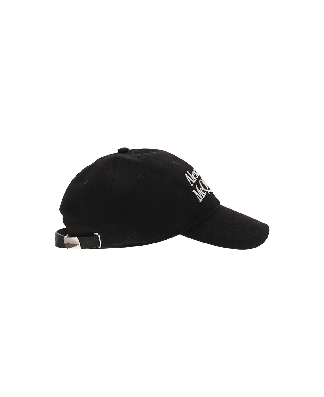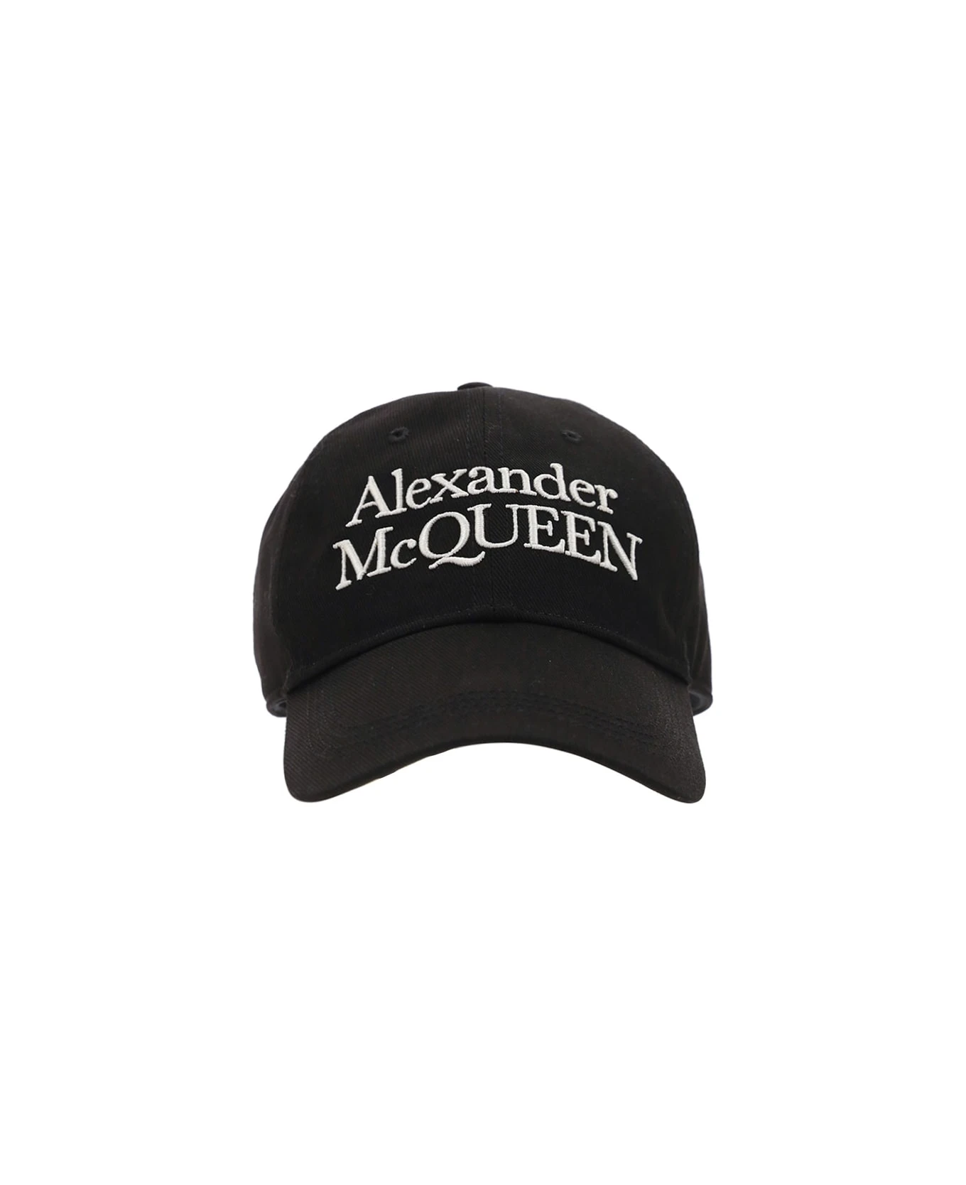 Cotton mcqueen stacked hat by alexander mc queen, embossed logo on the front, adjustable lace up back.
