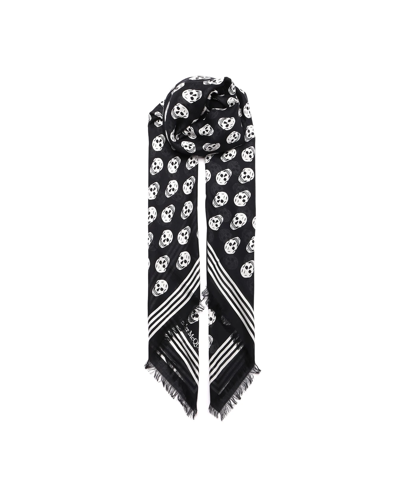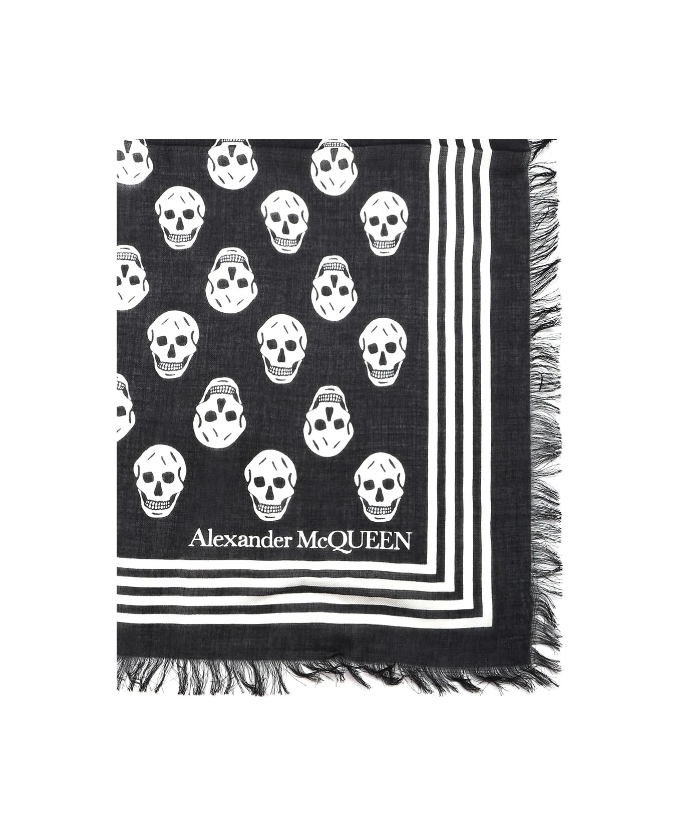 Black and white ‘Biker Skull’ modal scarf with skull print and frayed hems from Alexander McQueen.