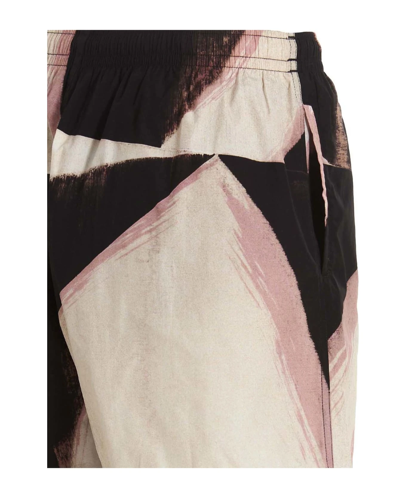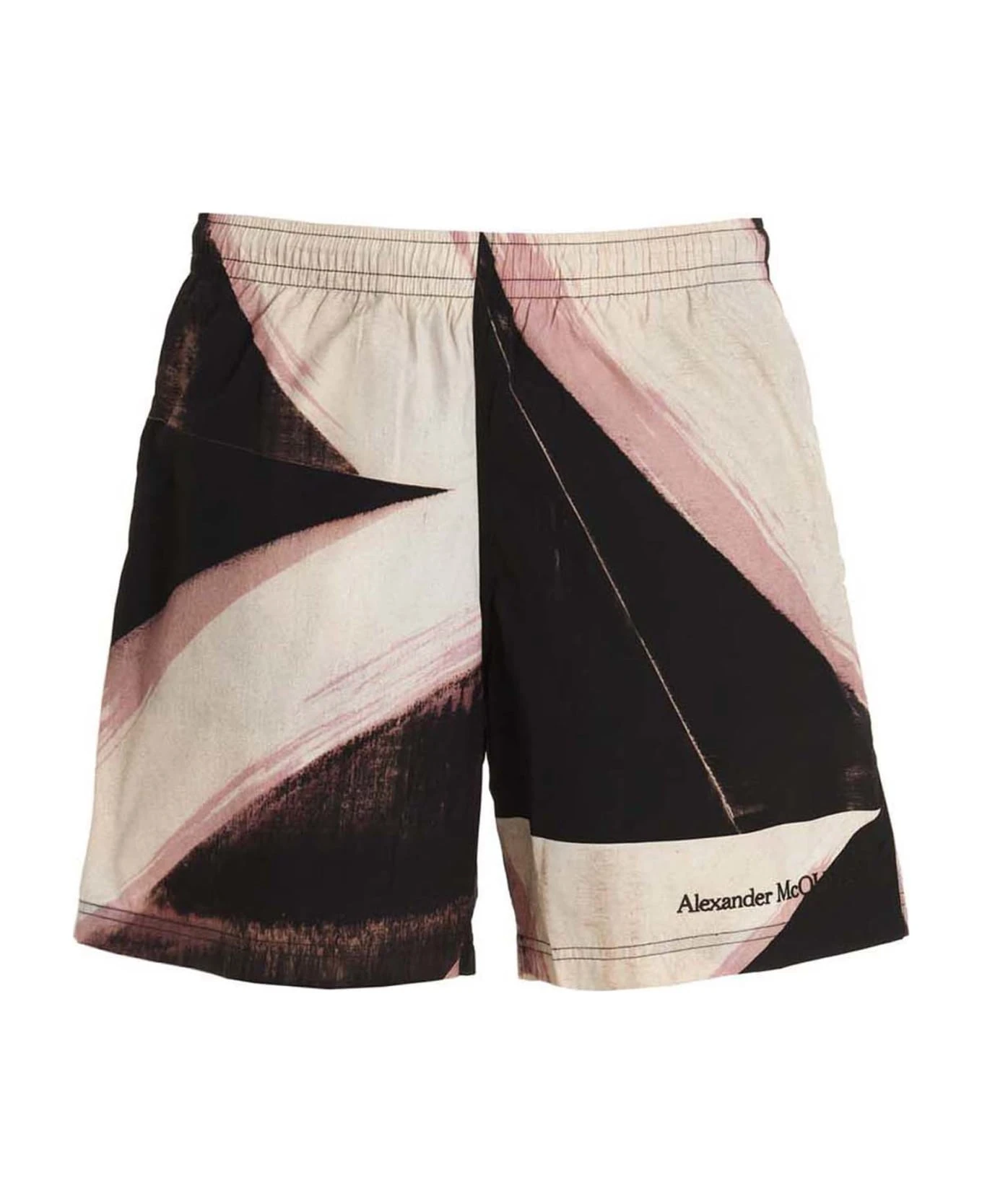 Costume in tessuto tecnico con stampa all-over, elastico e coulisse in vita, tasche, ricamo logo frontale, slip in rete interno.
