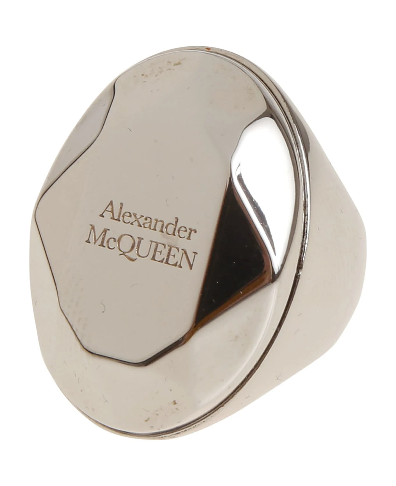 Alexander McQueen`s faceted stone ring showcases a polished and faceted finish in silver-tone and brass, with its engraved logo adding the perfect touch to the design.