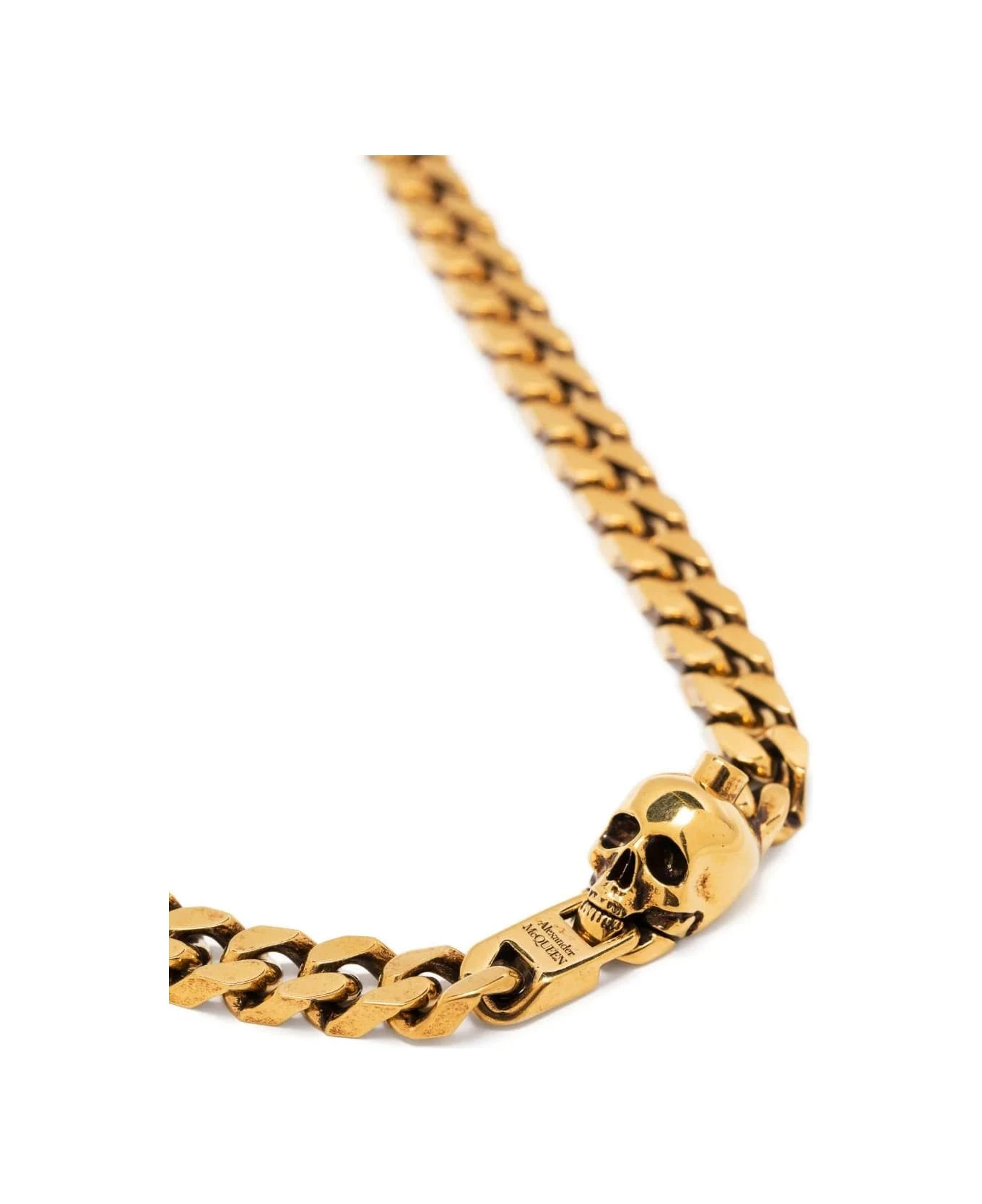 Alexander McQueen chain Skull necklace made of brass with gold-plated finish.