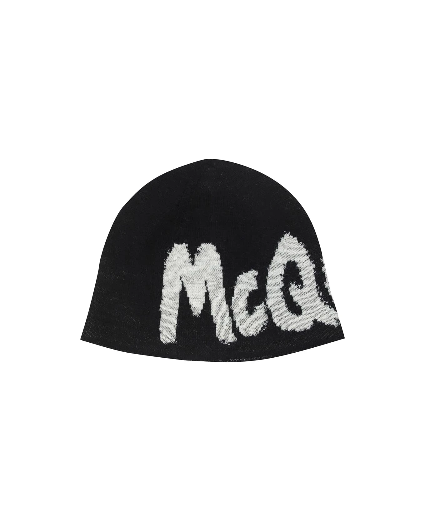 Wool graffiti hat by alexander mcqueen, iconic brand monogram embroidered in contrast on the front, model