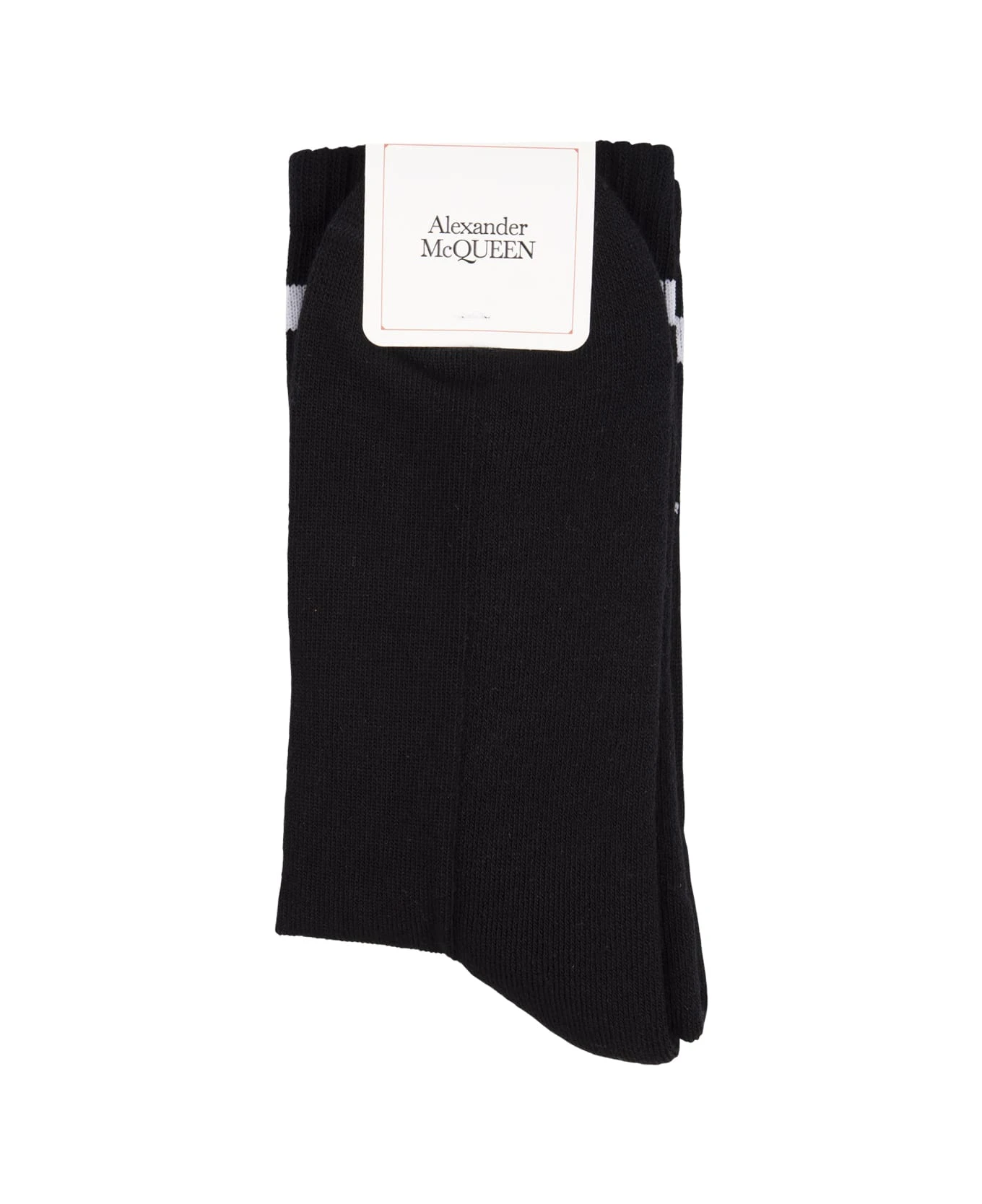 Alexander McQueen socks made of black stretch cotton blend and decorated with contrasting inlaid Skull logo.