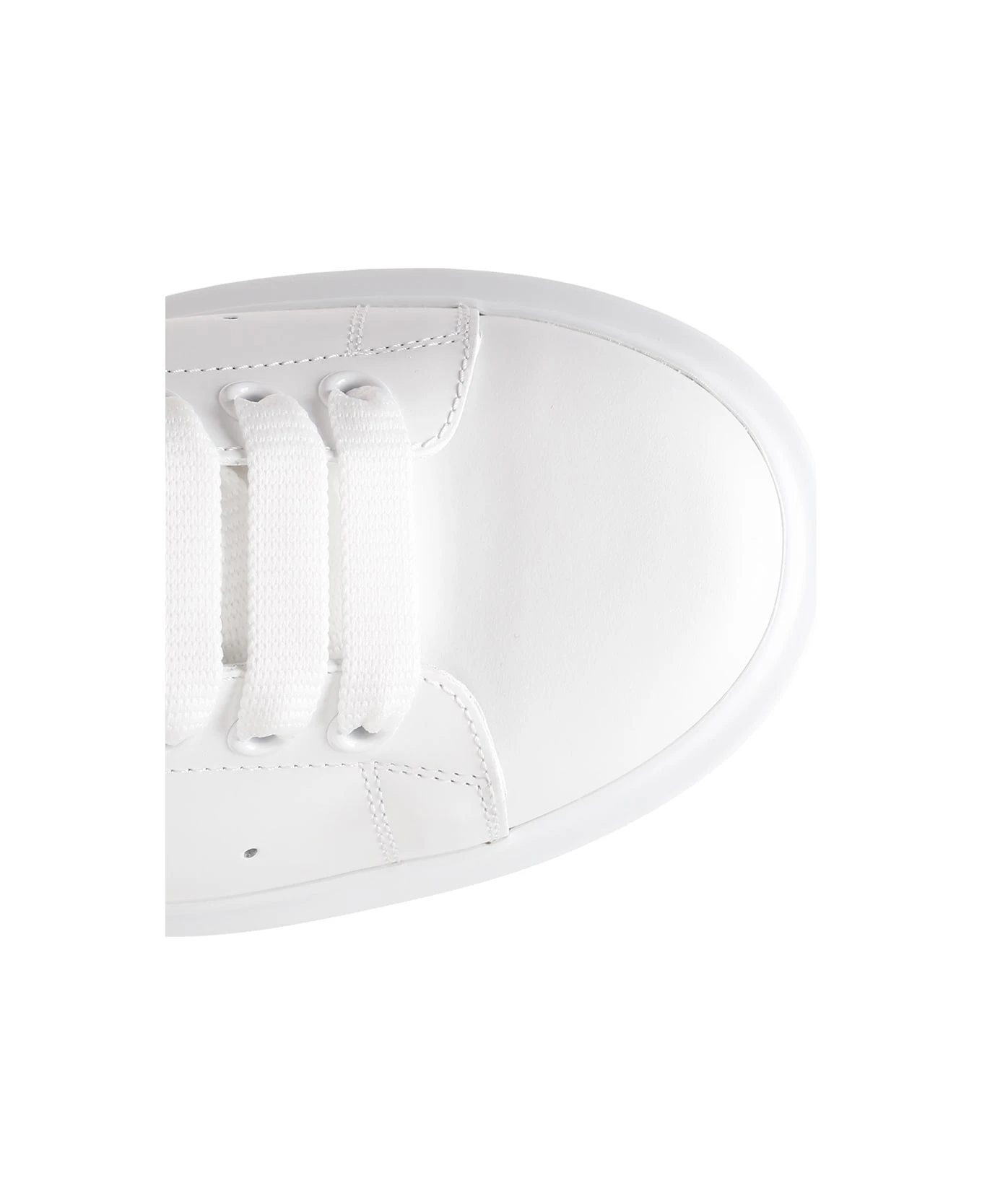 White “Oversize” sneakers from Alexander McQueen in leather, maxi white rubber sole, red suede heel tab with printed logo.