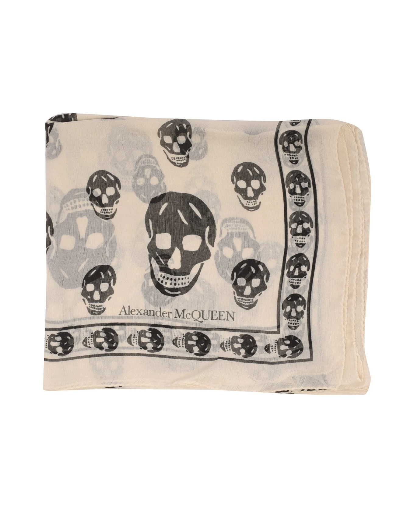 Alexander McQueen white ivory and black Skull scarf, logo all over and lateral logo