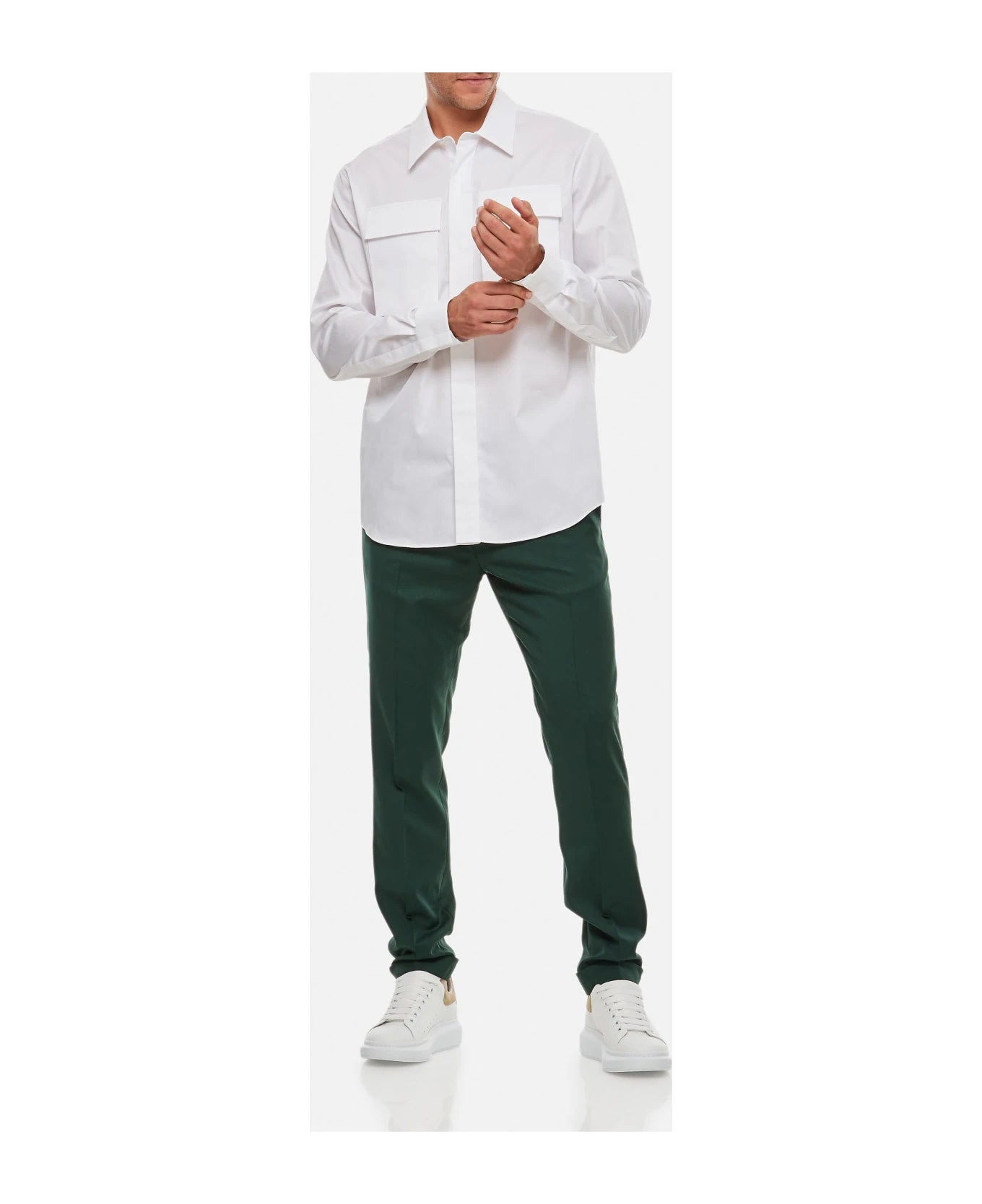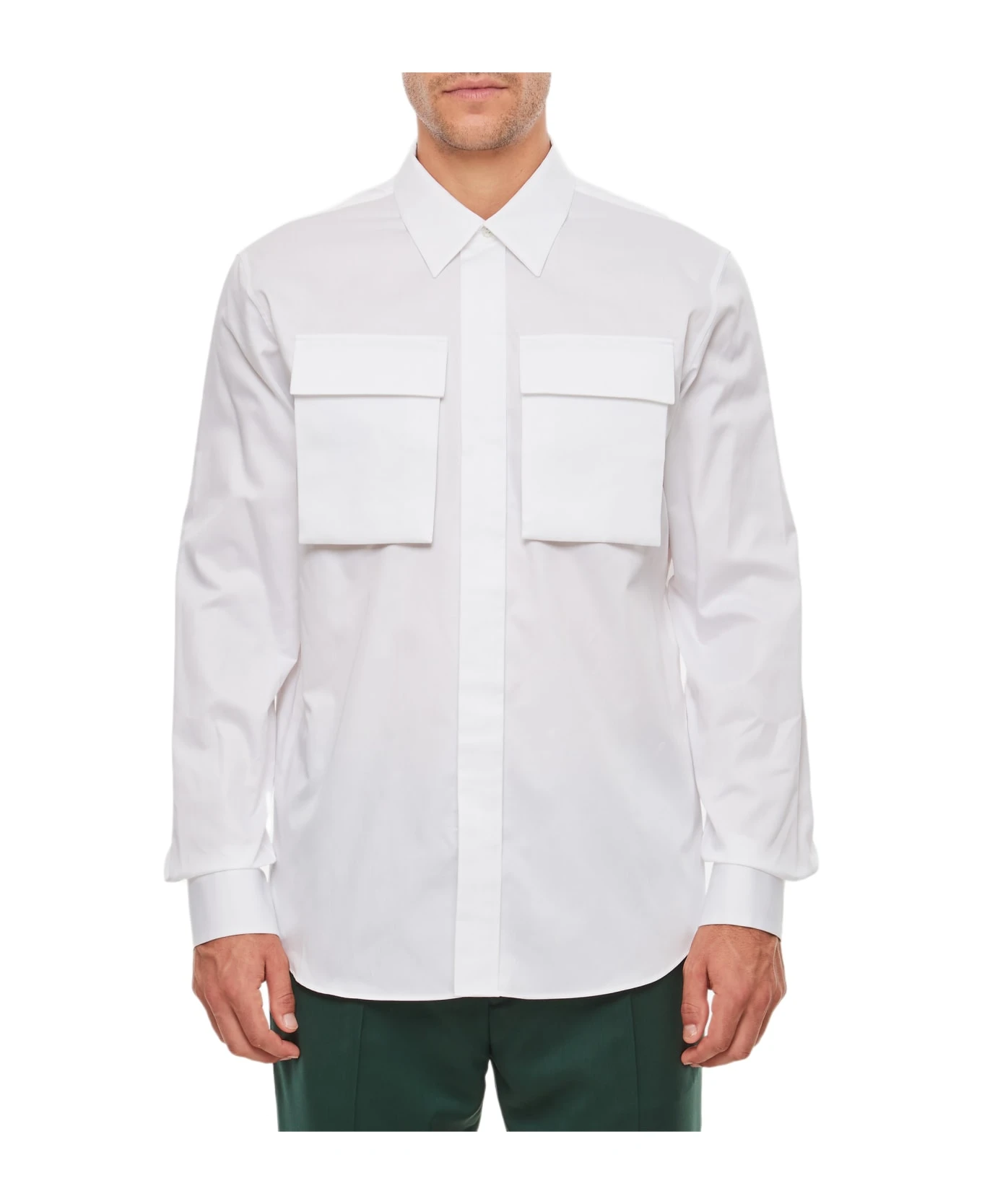 Front button closure. Double breast pocket with flap. Buttoned cuffs. Slim fit. Color: white.