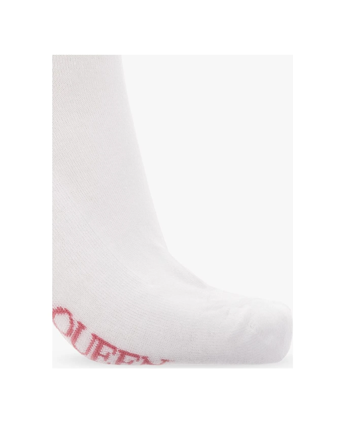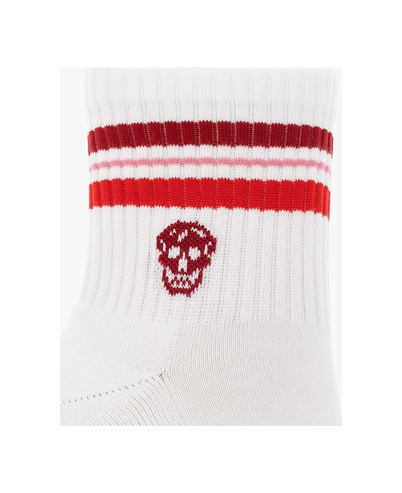 White socks from Alexander McQueen. Crafted from a cotton blend, this pair showcases graphic embroidery with the brand’s logo and signature skull and red and maroon ribbed cuffs.