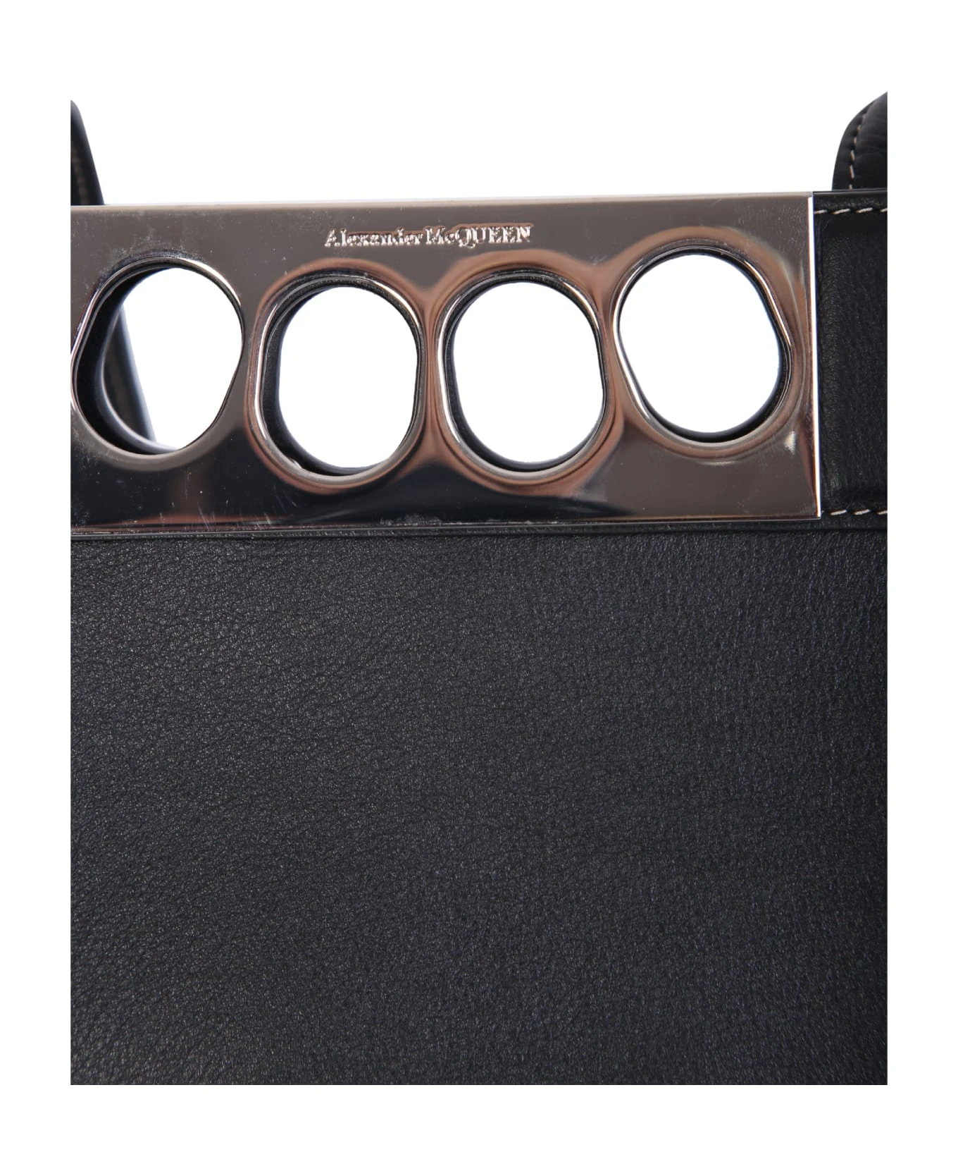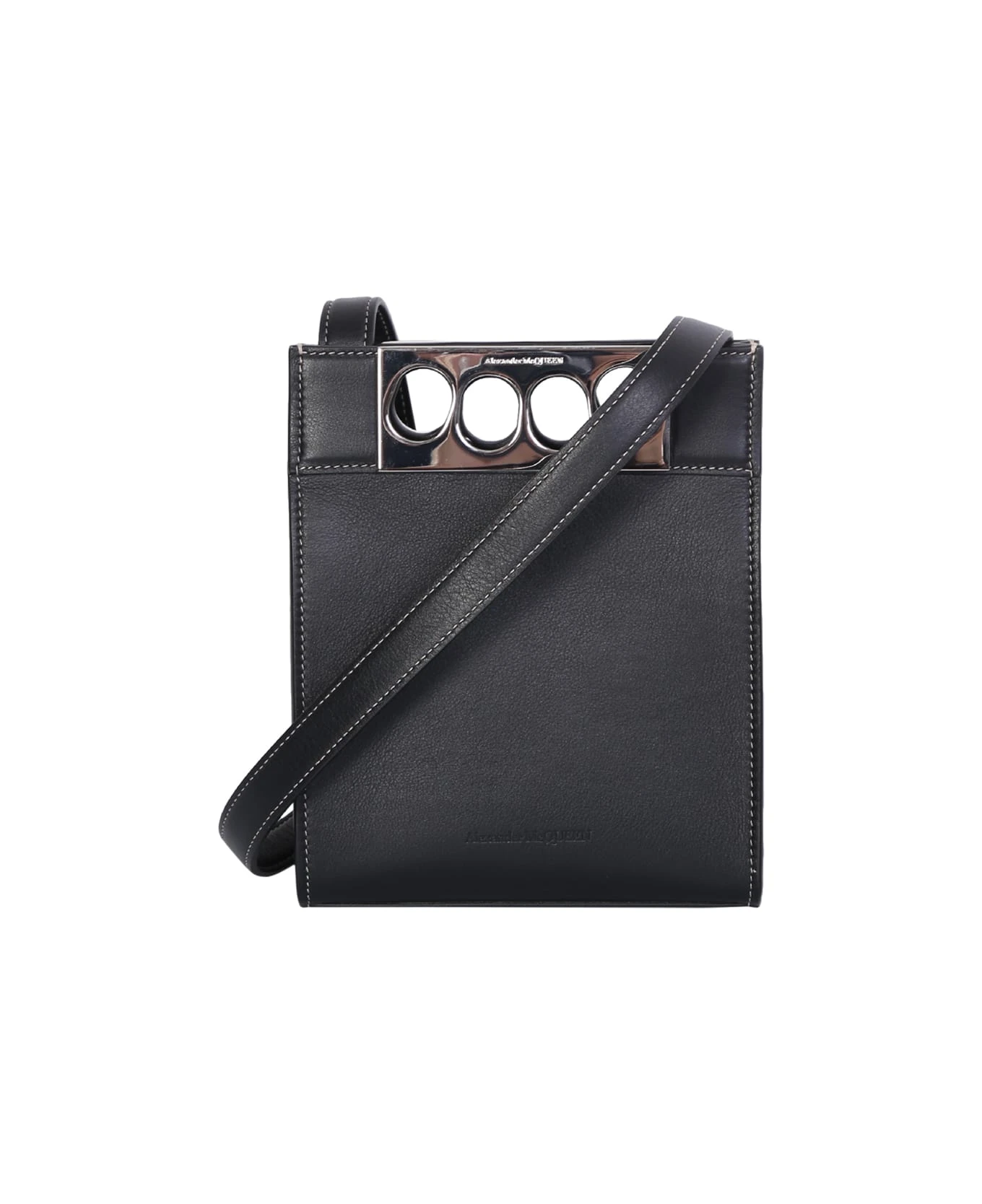 Mini Tote Bag. Metal Grip Ring Handle. Inner slot for credit card. Adjustable leather shoulder strap. Contrasting suede effect lining. Color: black. Materials: 100% Calfskin leather