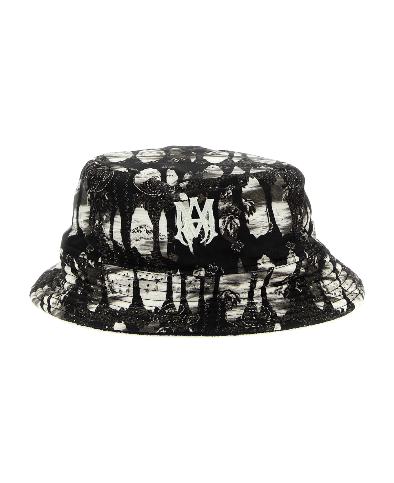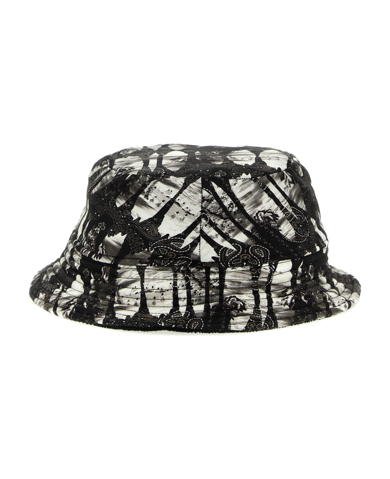 Reversible bucket hat with all-over ‘Bandana’ print silk side, solid cotton terry side with logo embroidery.