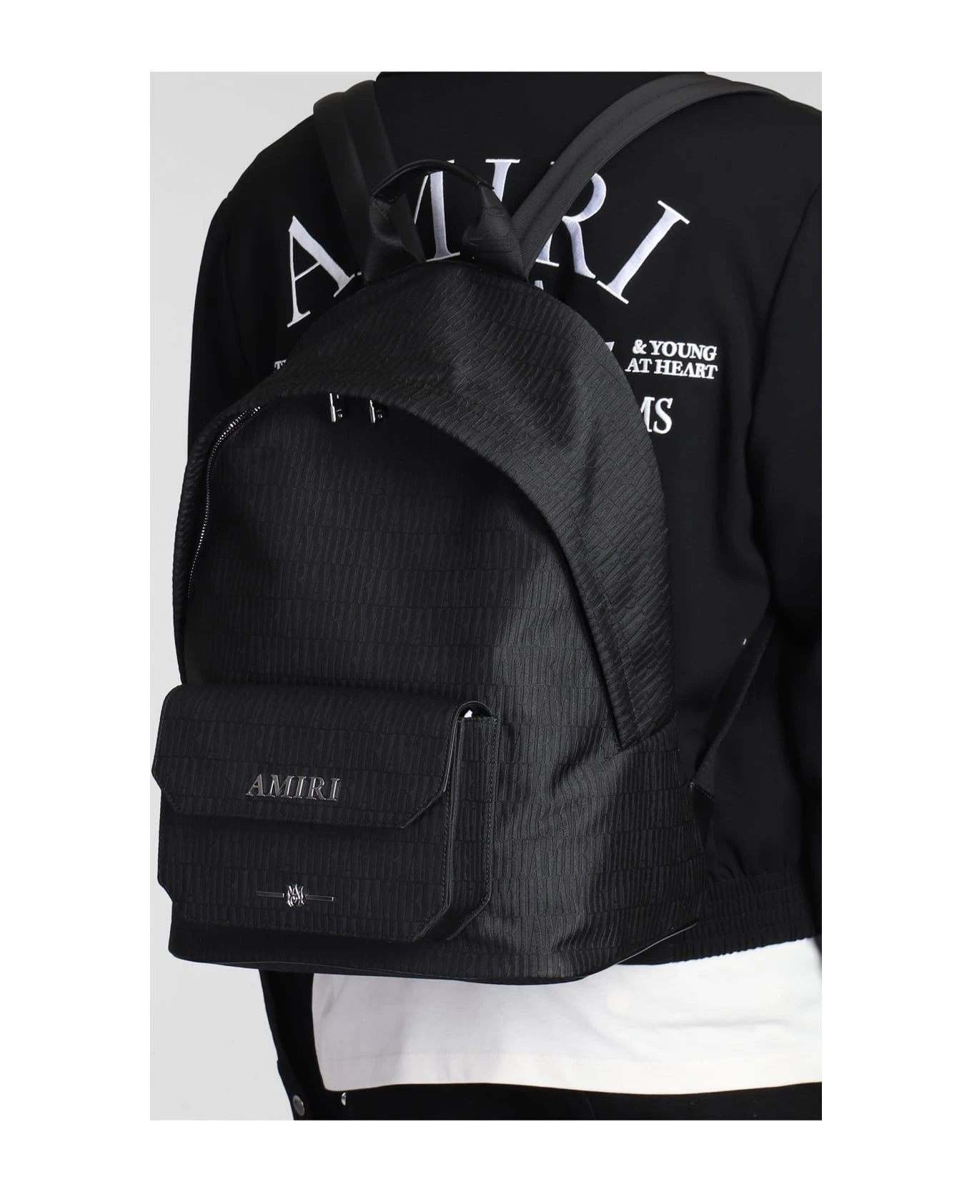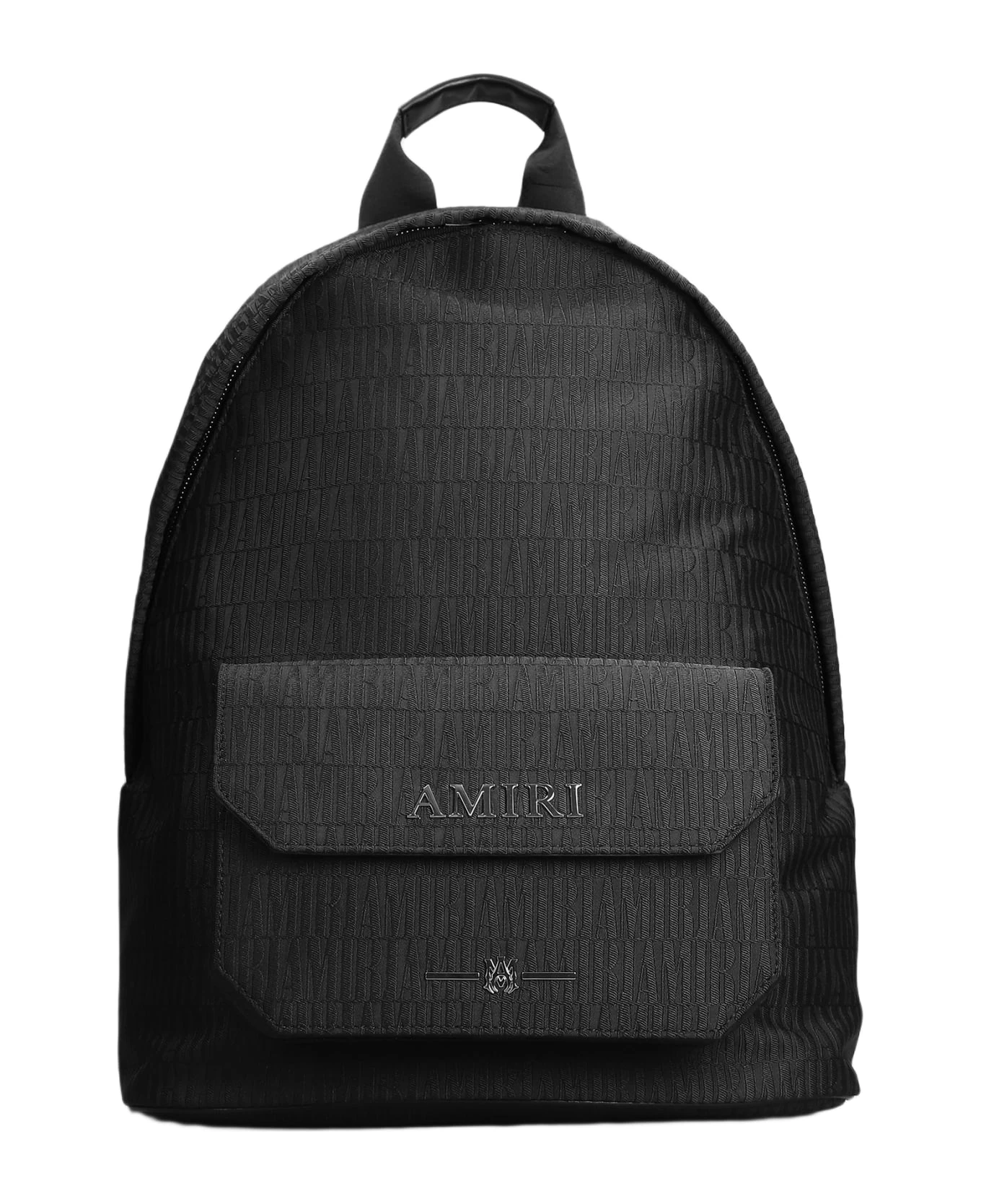 Jacquard Backpack in black cotton, Height 400 mm, Width 320 mm, handle, adjustable shoulder strap, zip closure, front flap pocket, metallic logo, jacquard print, black hardware, 10% elastan, leather insert detail, 100% polyester, fully lined, 100% Nylon, Made in Italy