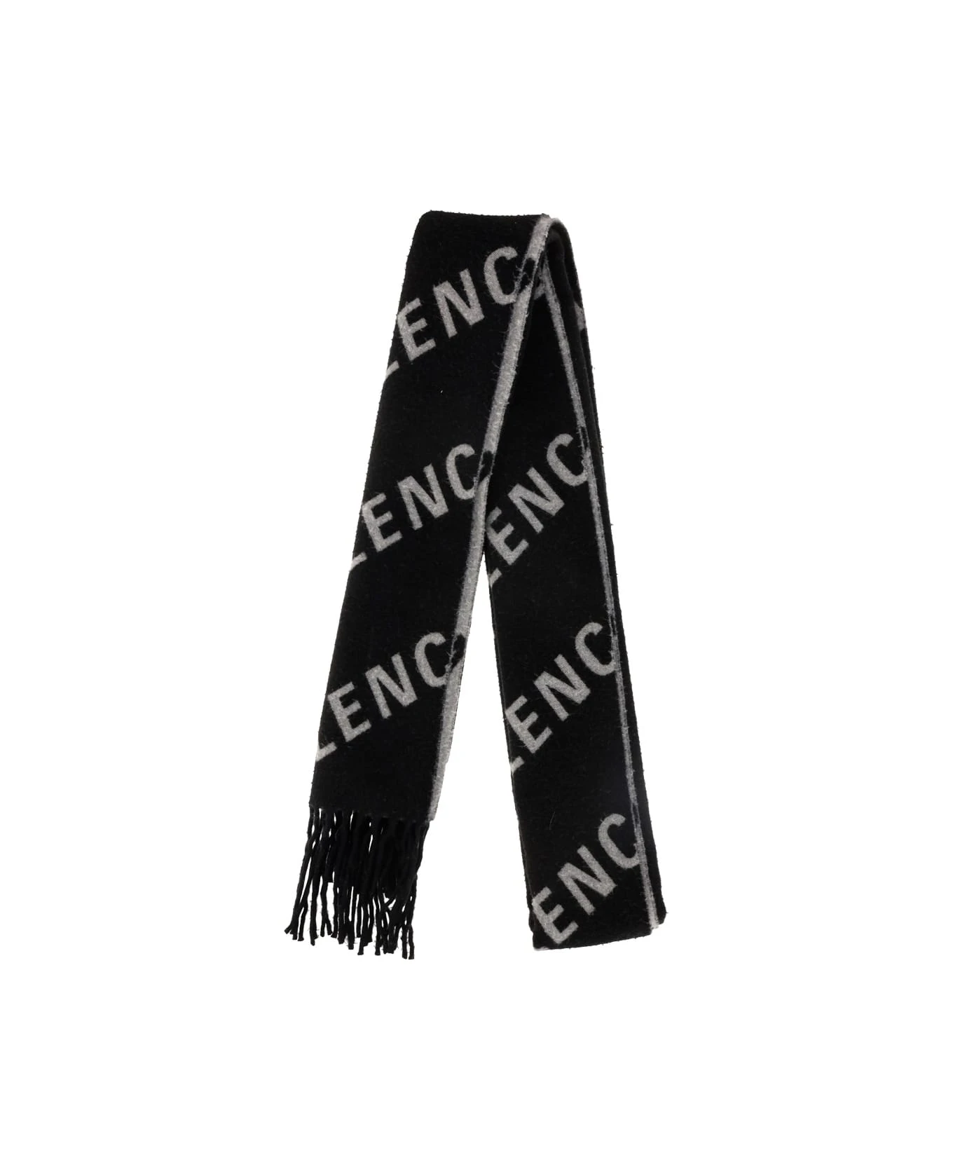 Wool All Over Scarf By Balenciaga, Iconic Brand Monogram Printed In Contrasting All-over On Front And Back, Frayed Hems.