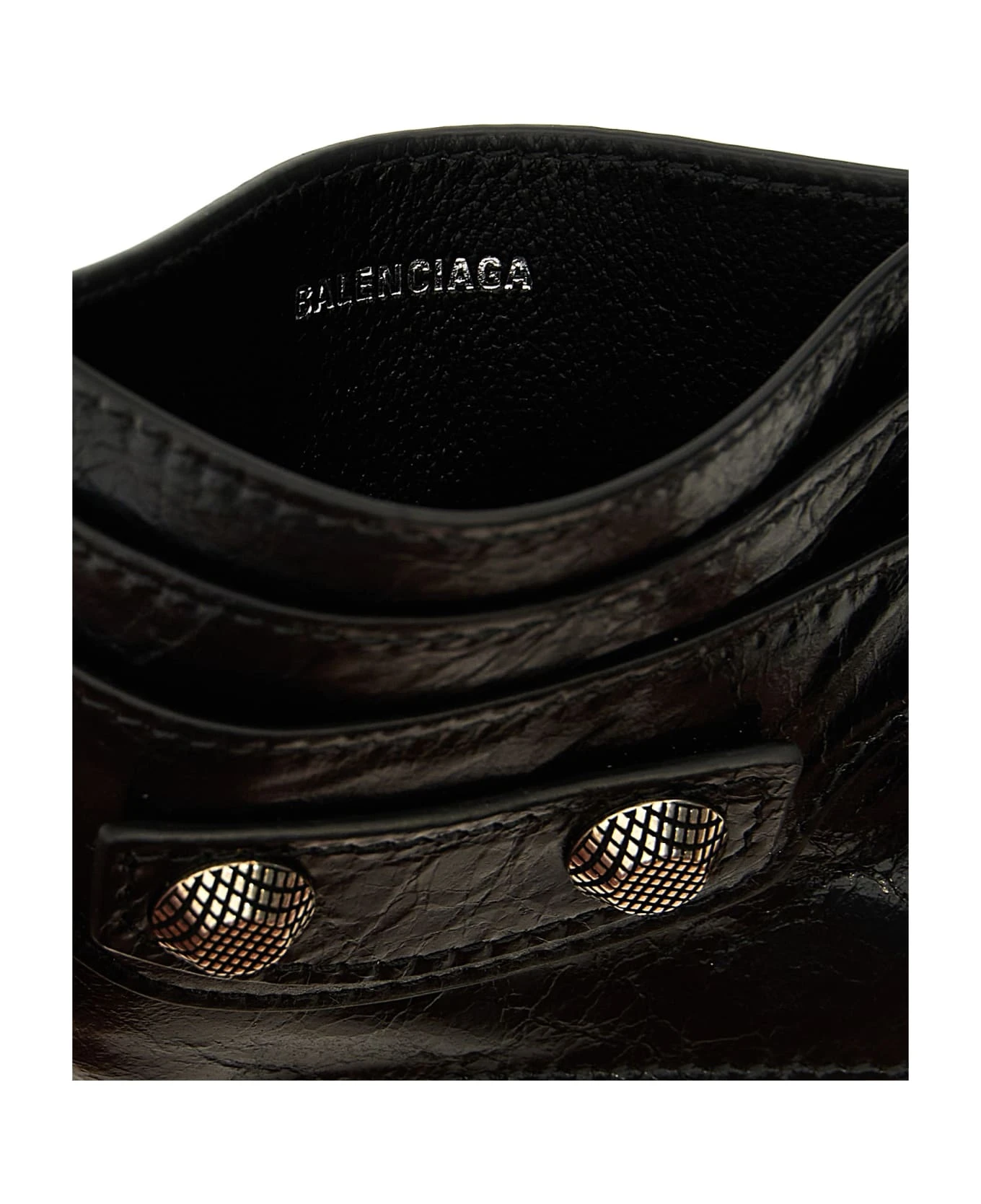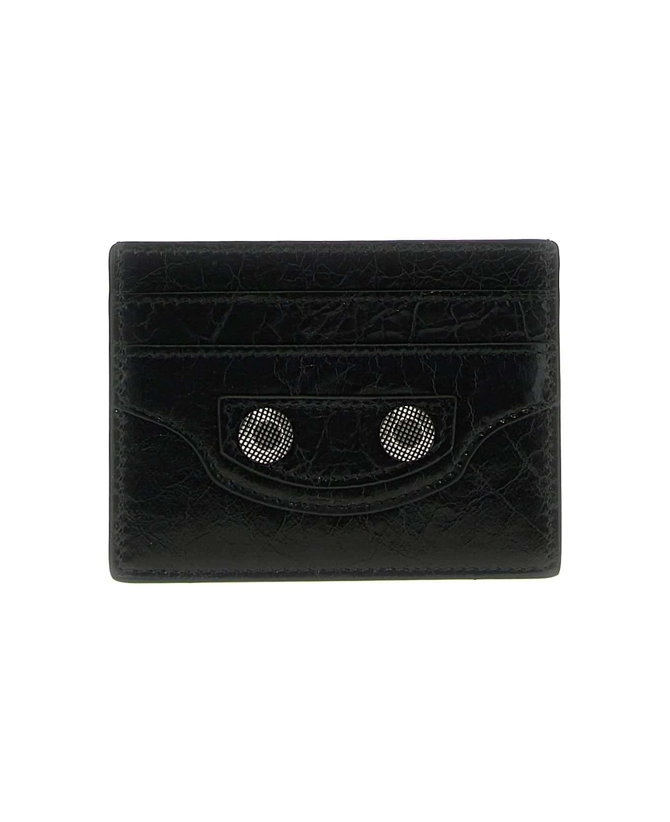 ‘City’ arena leather card holder with metal details.