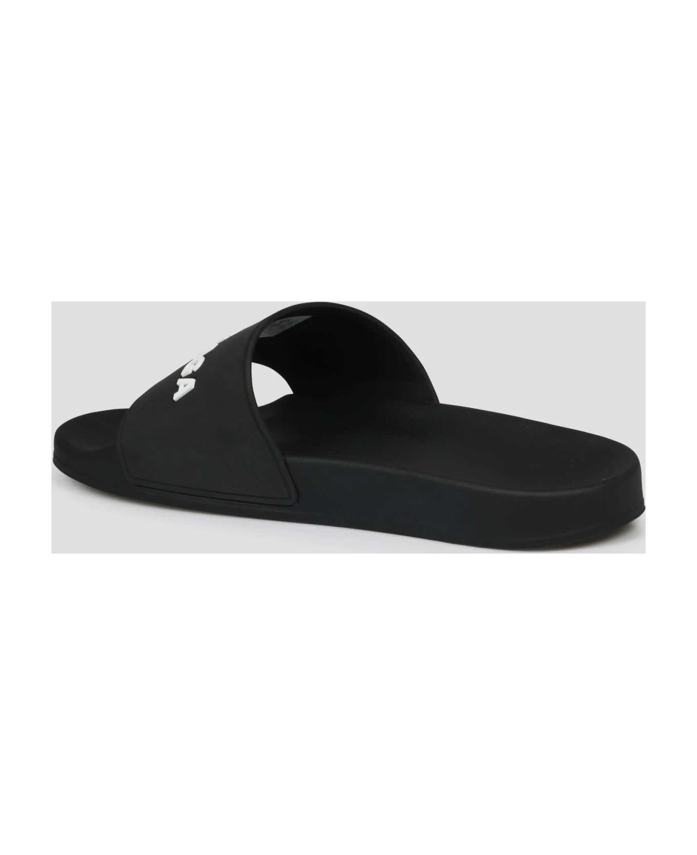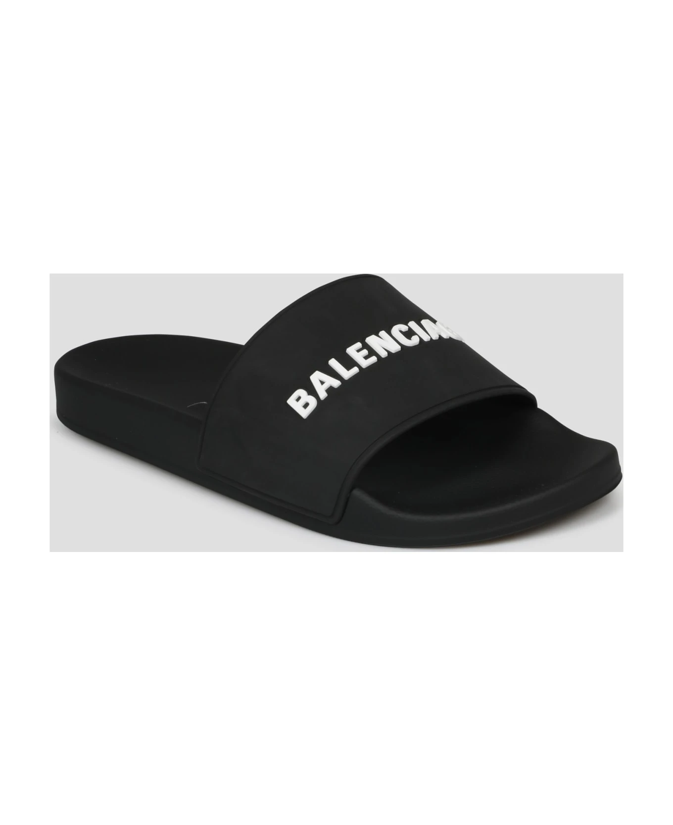 Balenciaga slide sandals with 3D logo on the front strap. – Round toe