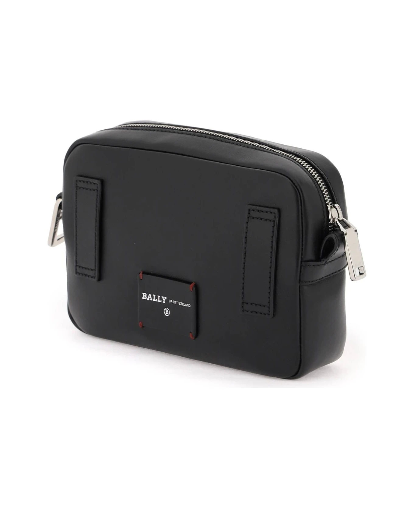 Hal leather crossbody bag by Bally featuring front iconic Stripe and tone-on-tone grosgrain logo band. Concealed front zipper closure, main compartment with top zipper closure featuring an open pocket and a zippered pocket inside, two leather tabs and logo patch at back. Fabric-lined design with removable and adjustable logo fabric shoulder strap. Silver-finished metalware.