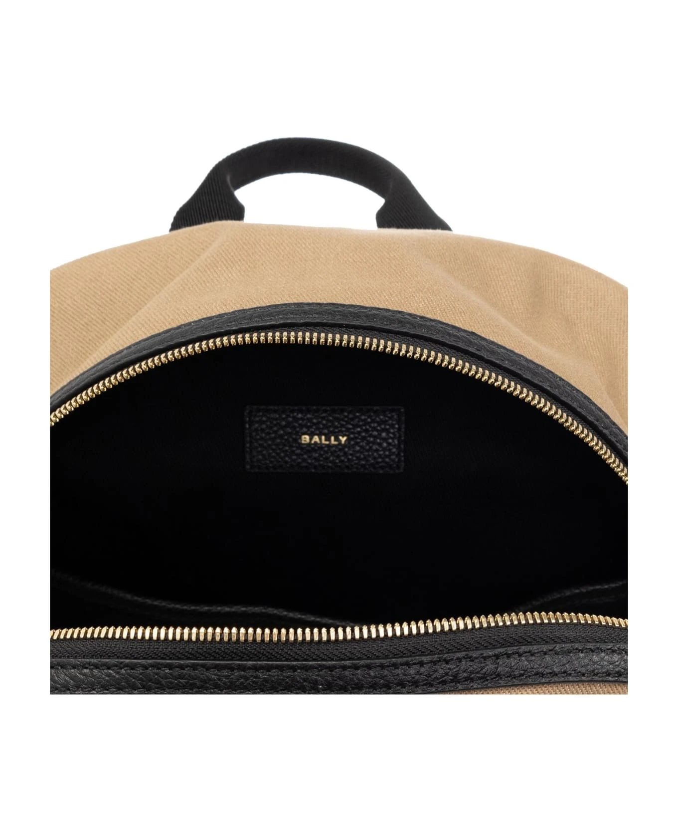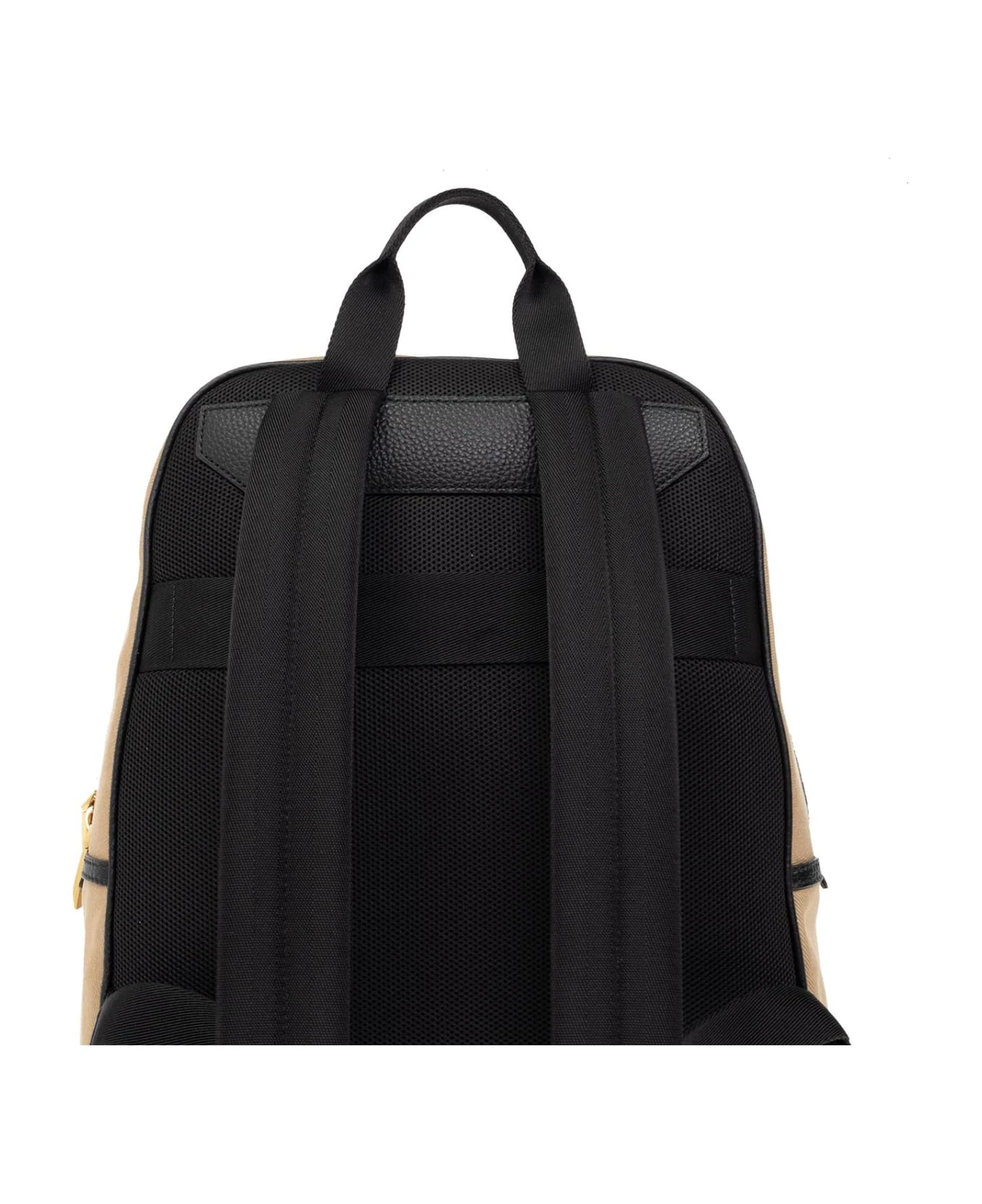 Light brown and black ‘Treck’ backpack from Bally. Made from fabric and trimmed with leather, this design fastens with a two-way zip and showcases a printed black logo. It is complete with a zip front pocket, one top handle, adjustable shoulder straps, go
