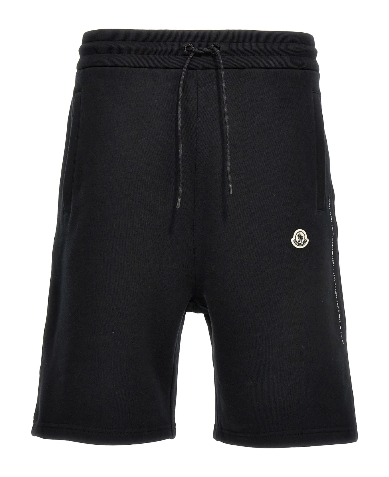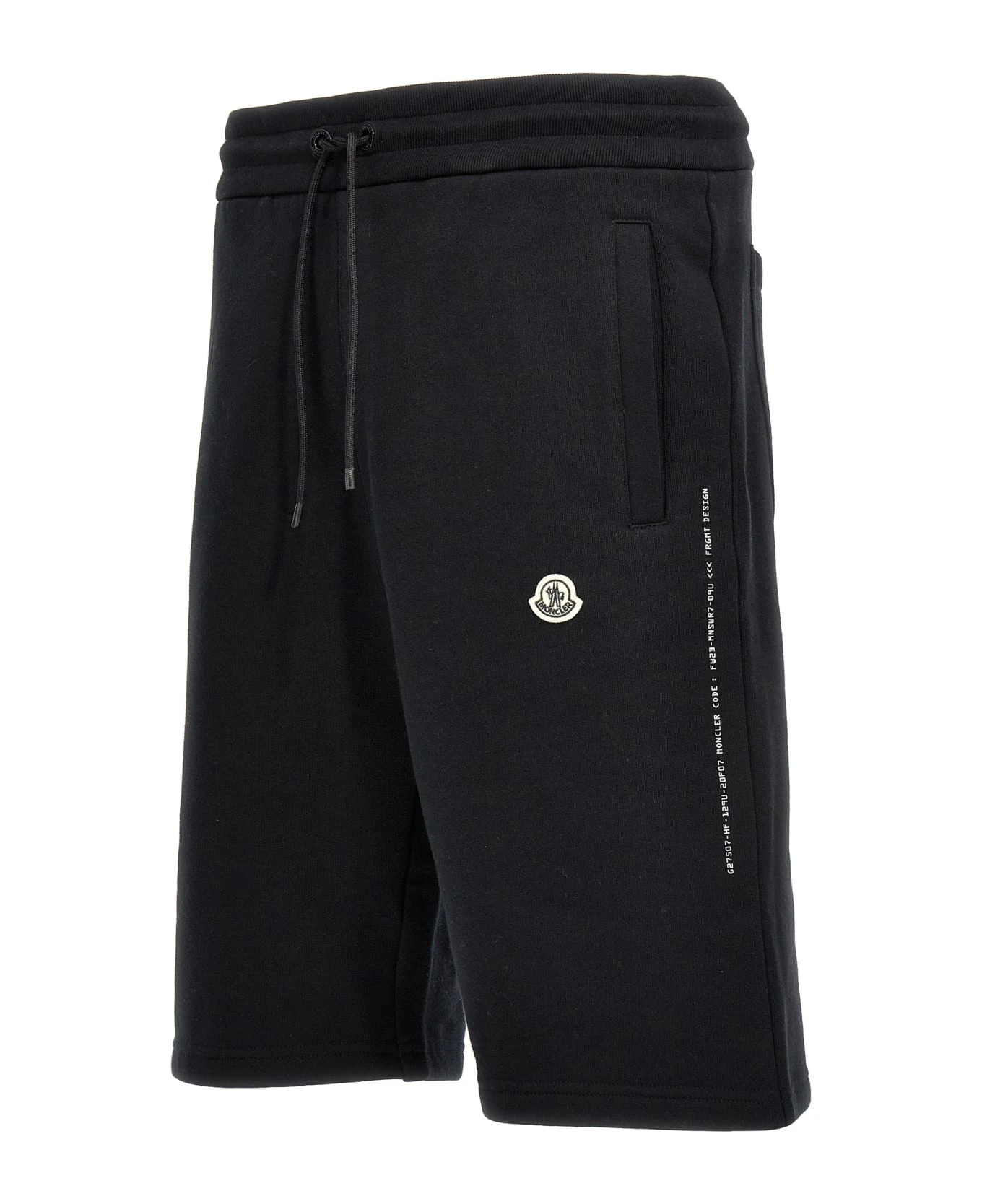 Moncler Genius x Fragment cotton bermuda shorts with logo print at the back, front logo patch, an elastic waistband and drawstring at the waist, pockets.