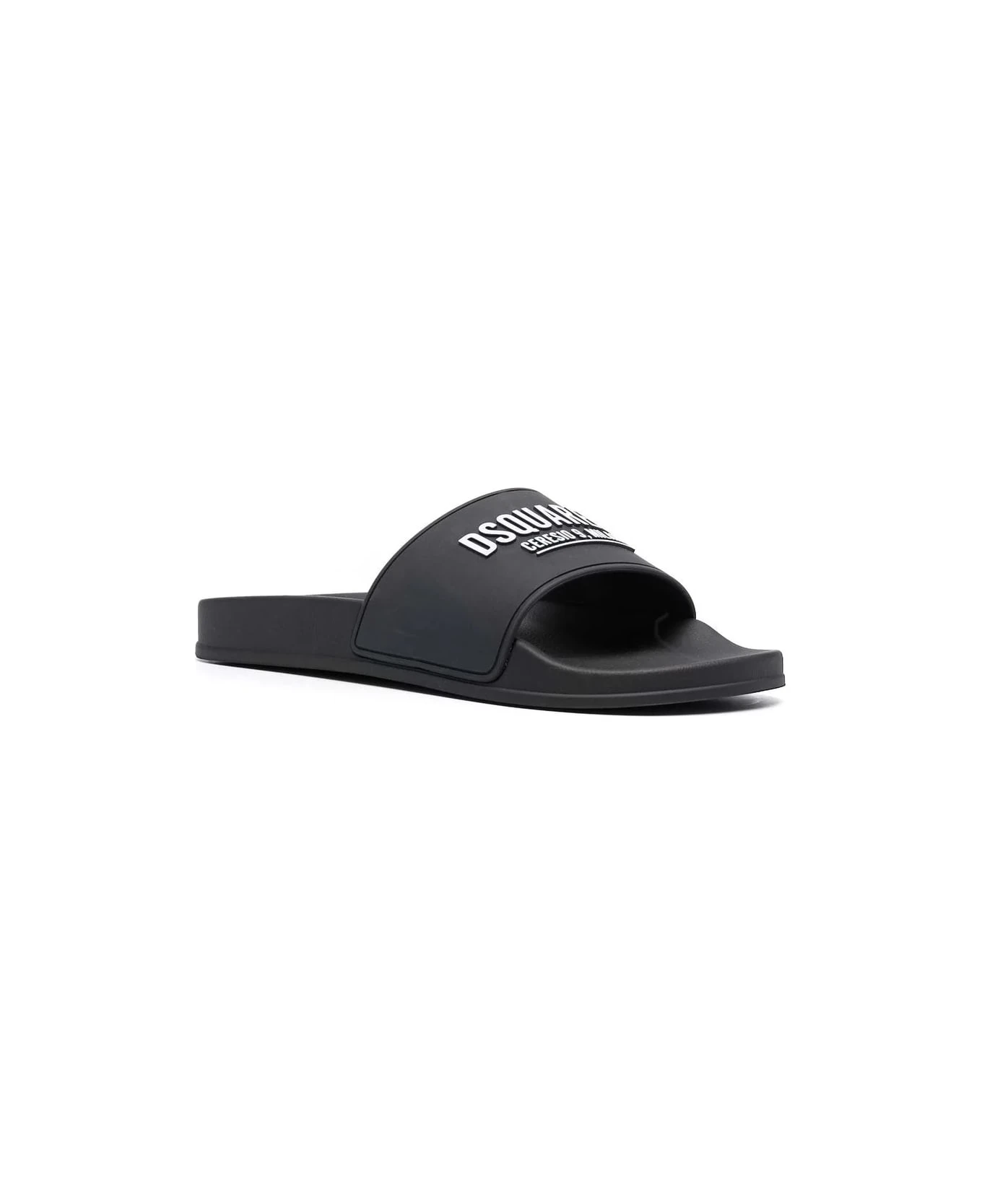 Dsquared2 slides for men crafted in black rubber and characterized by an open round toe and white “Dsquared2 Ceresio 9, Milano” lettering on the wide upper band.