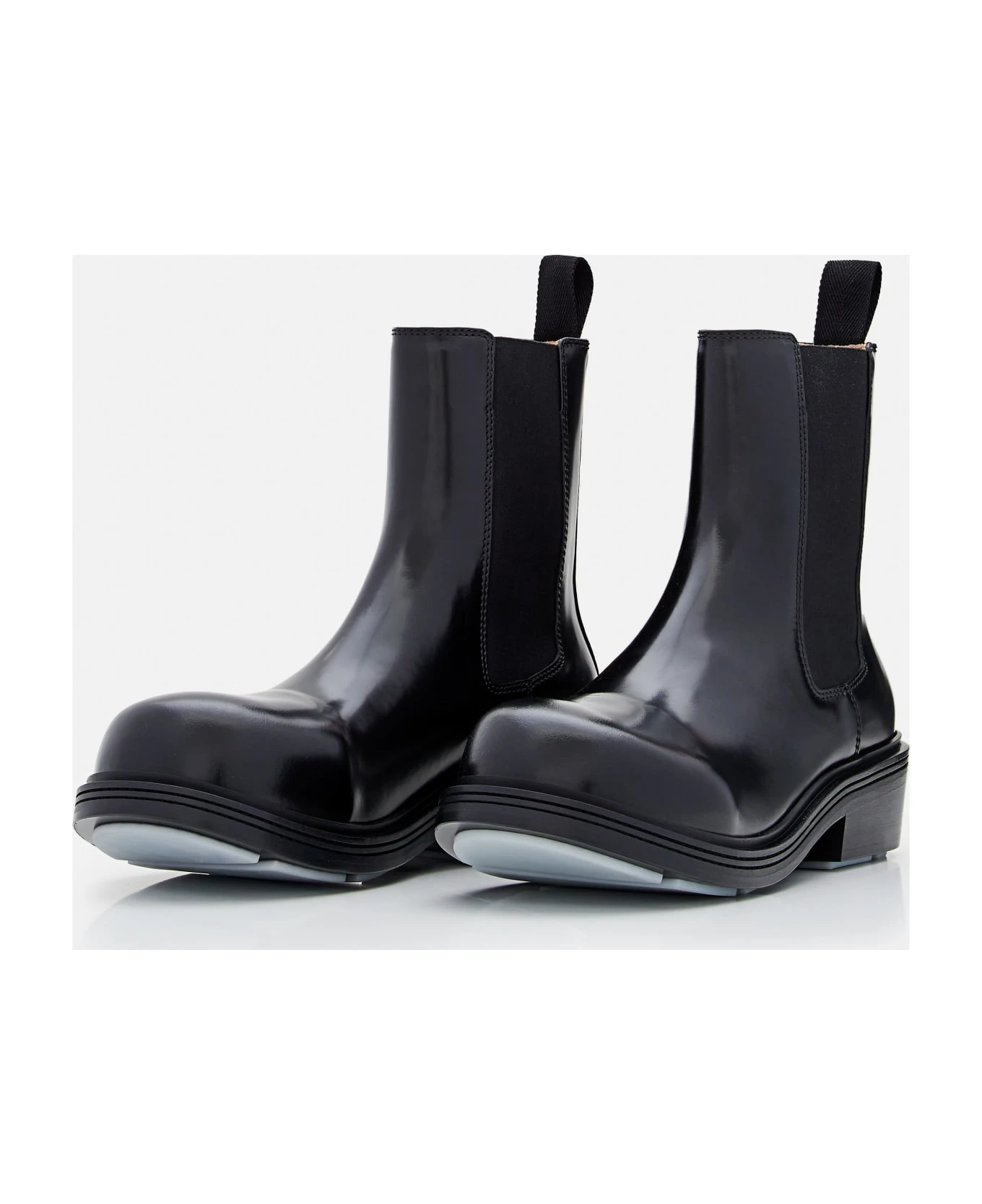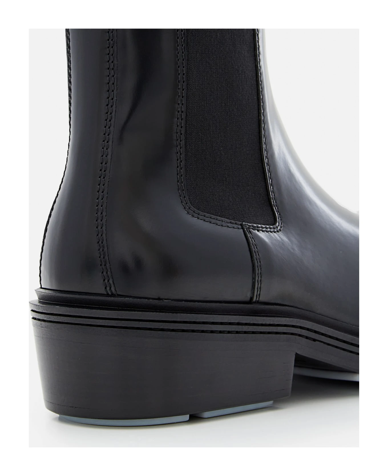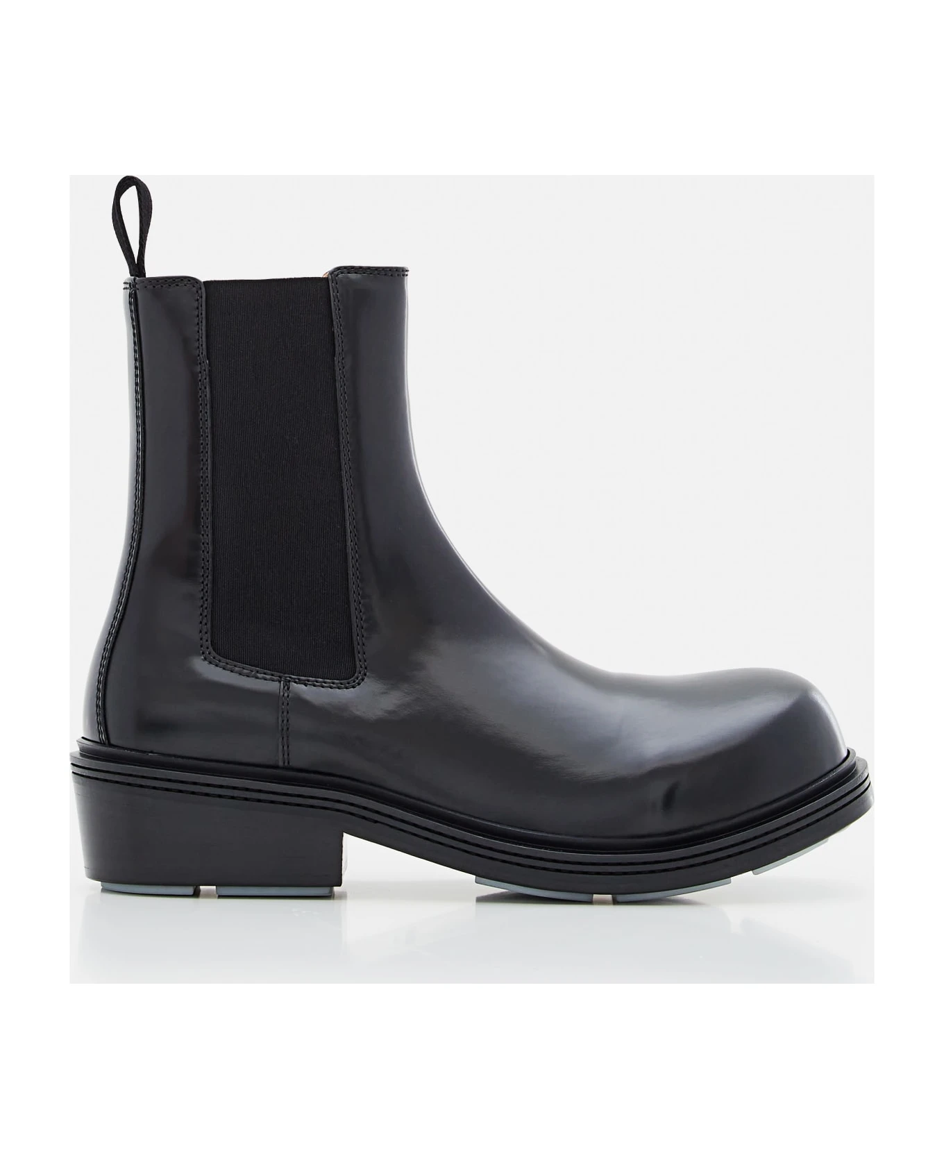 Leather boots. Pull loop. Elastic side detail. Rubber sole. Color: black.