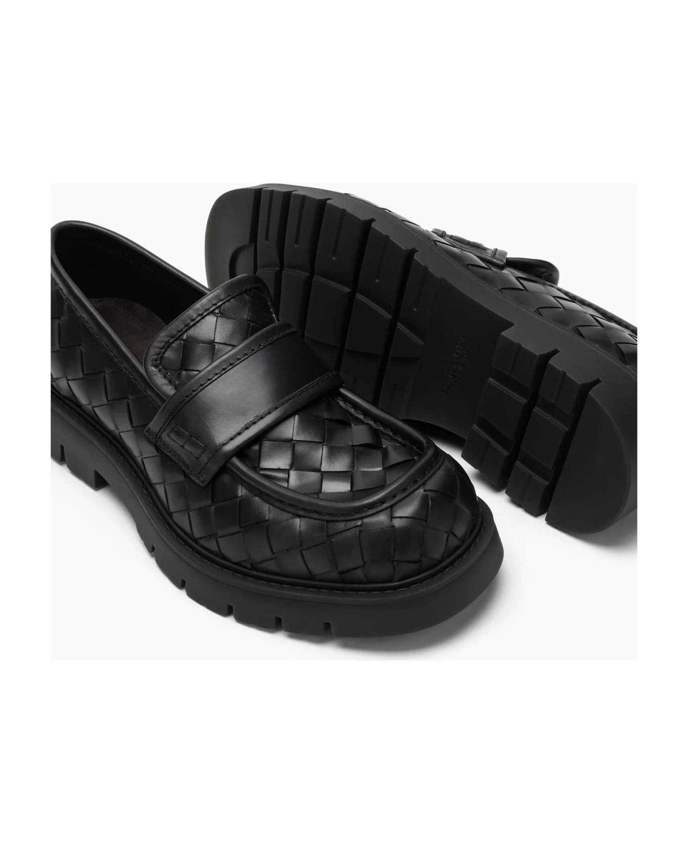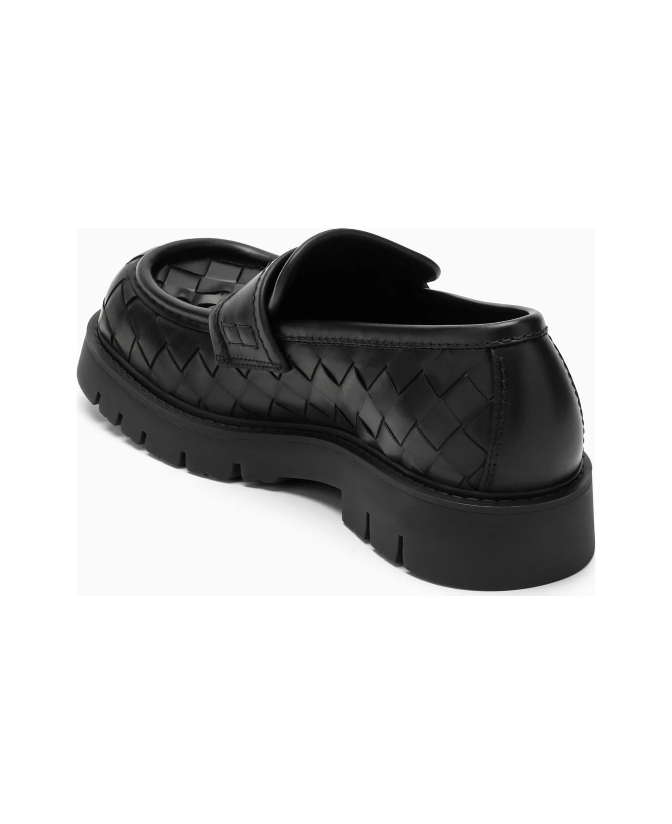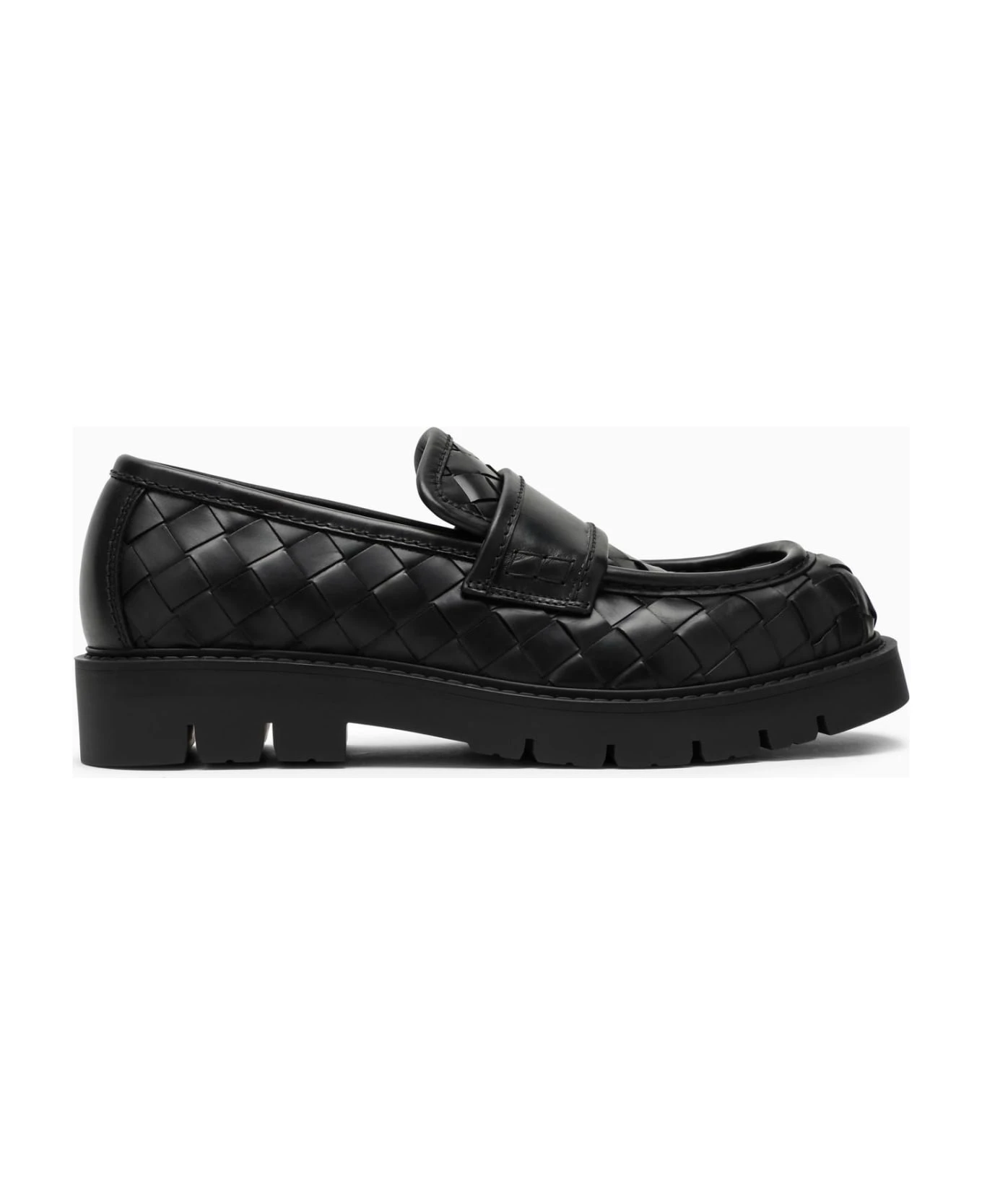 Black Intrecciato Bottega Veneta Moccasin With Rounded Toe, Rubber Sole And Smooth Leather Detail On The Upper.