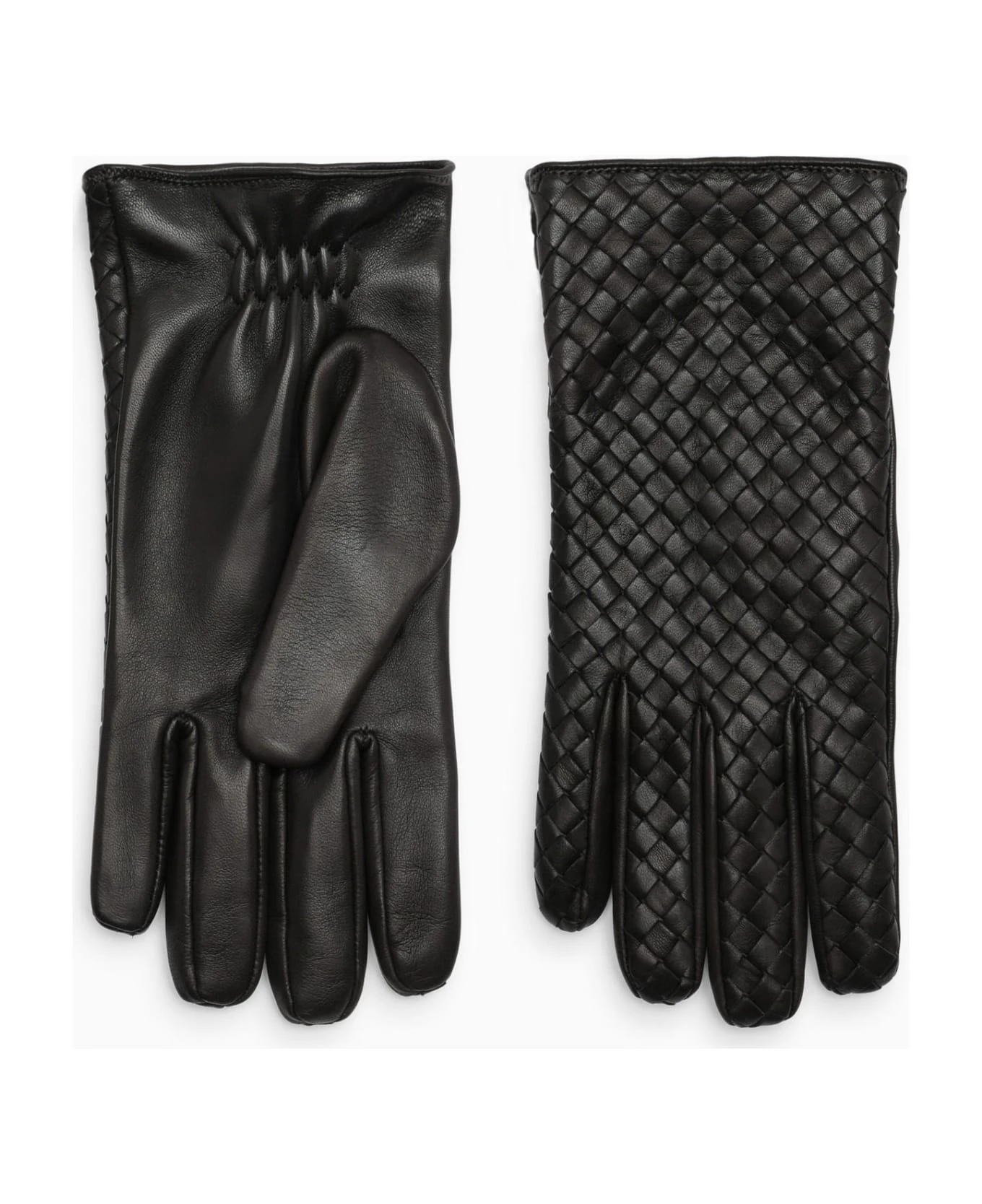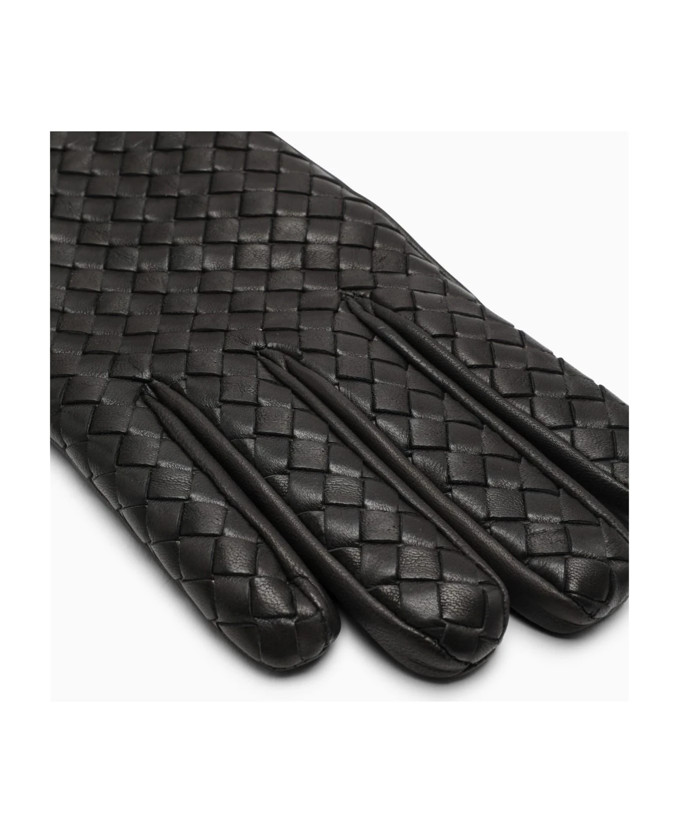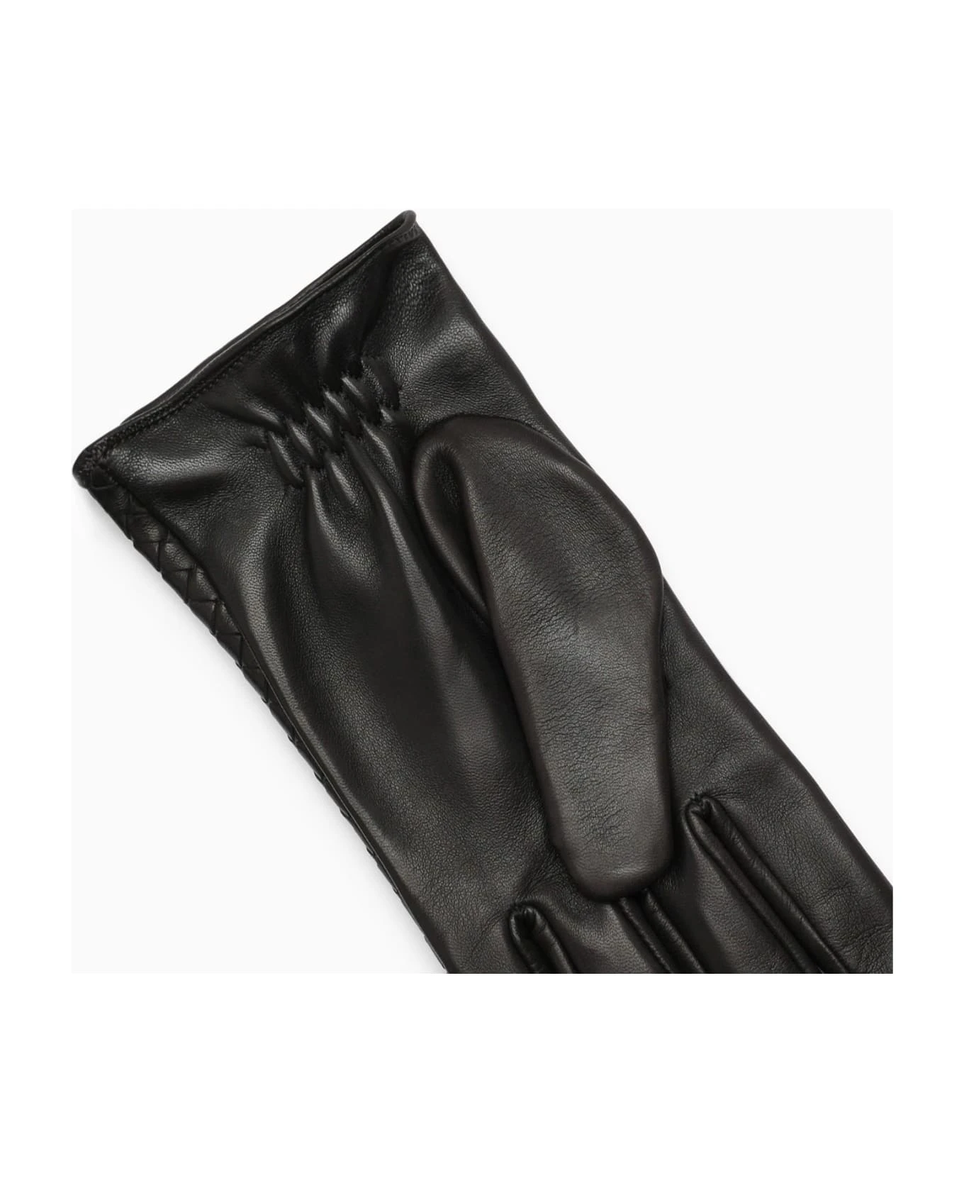 Gloves by Bottega Veneta in dark brown woven leather with an elastic insert on the inner palm.