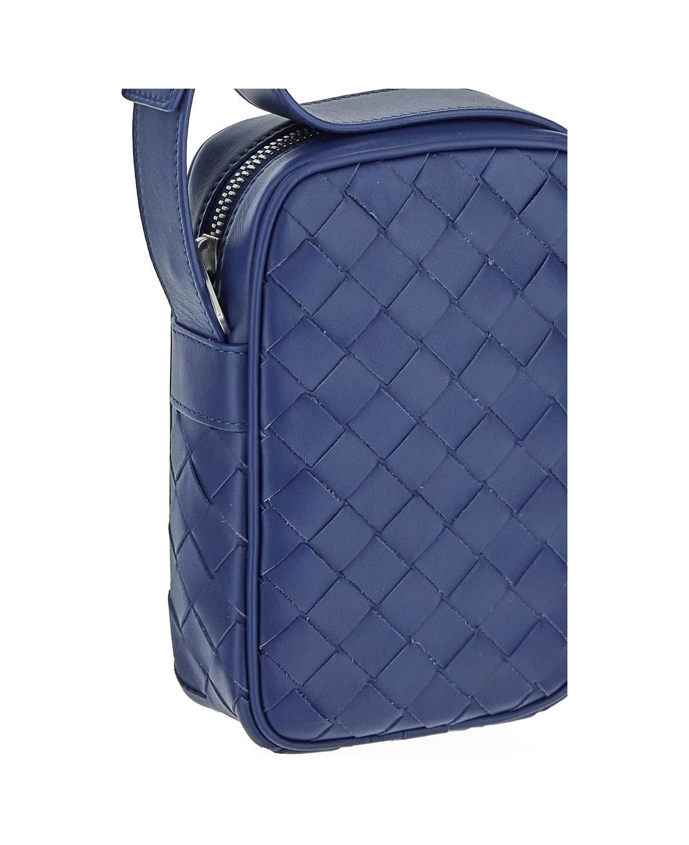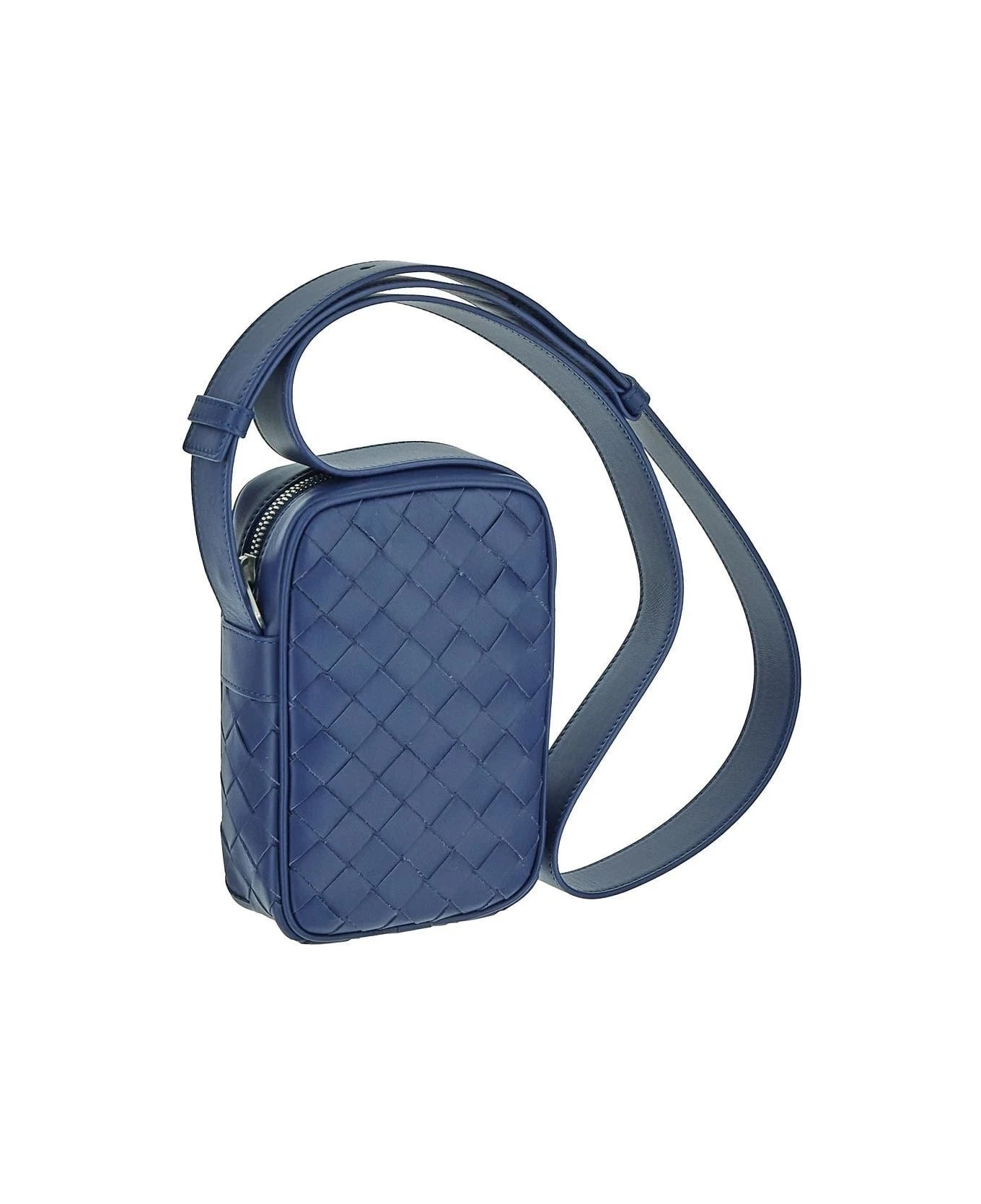 Bottega Veneta smartphone case in cruise leather with Intreccio design. The item is featured an adjustable shoulder strap, zip fastening and silver-tone hardware.