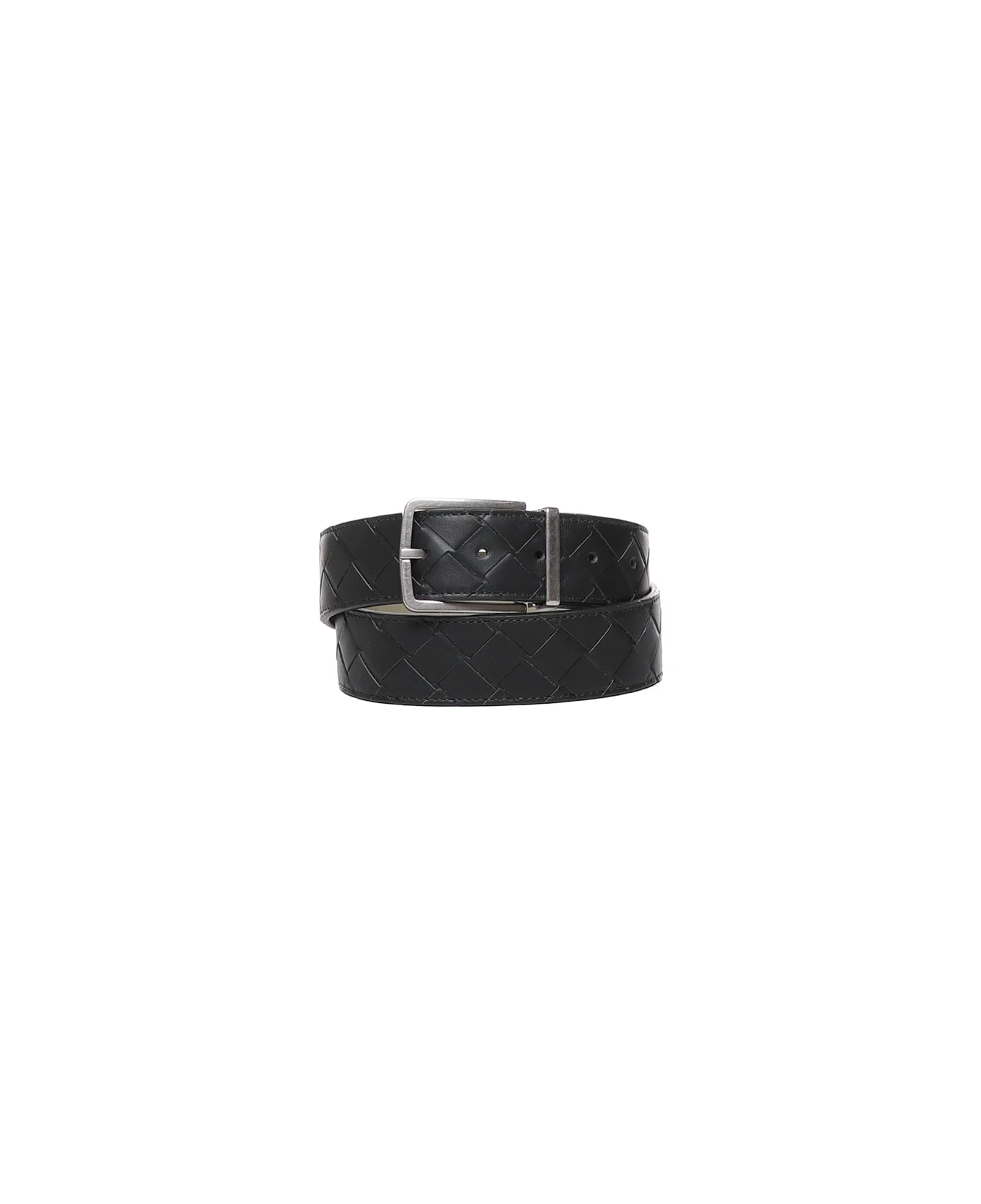 -Reversible leather belt with Intrecciato motif