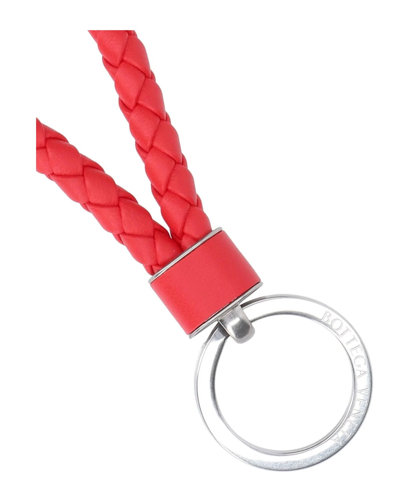 Bottega Veneta Keyring ‘Intreccio’, red leather, silver-plated metal ring with embossed logo detail.