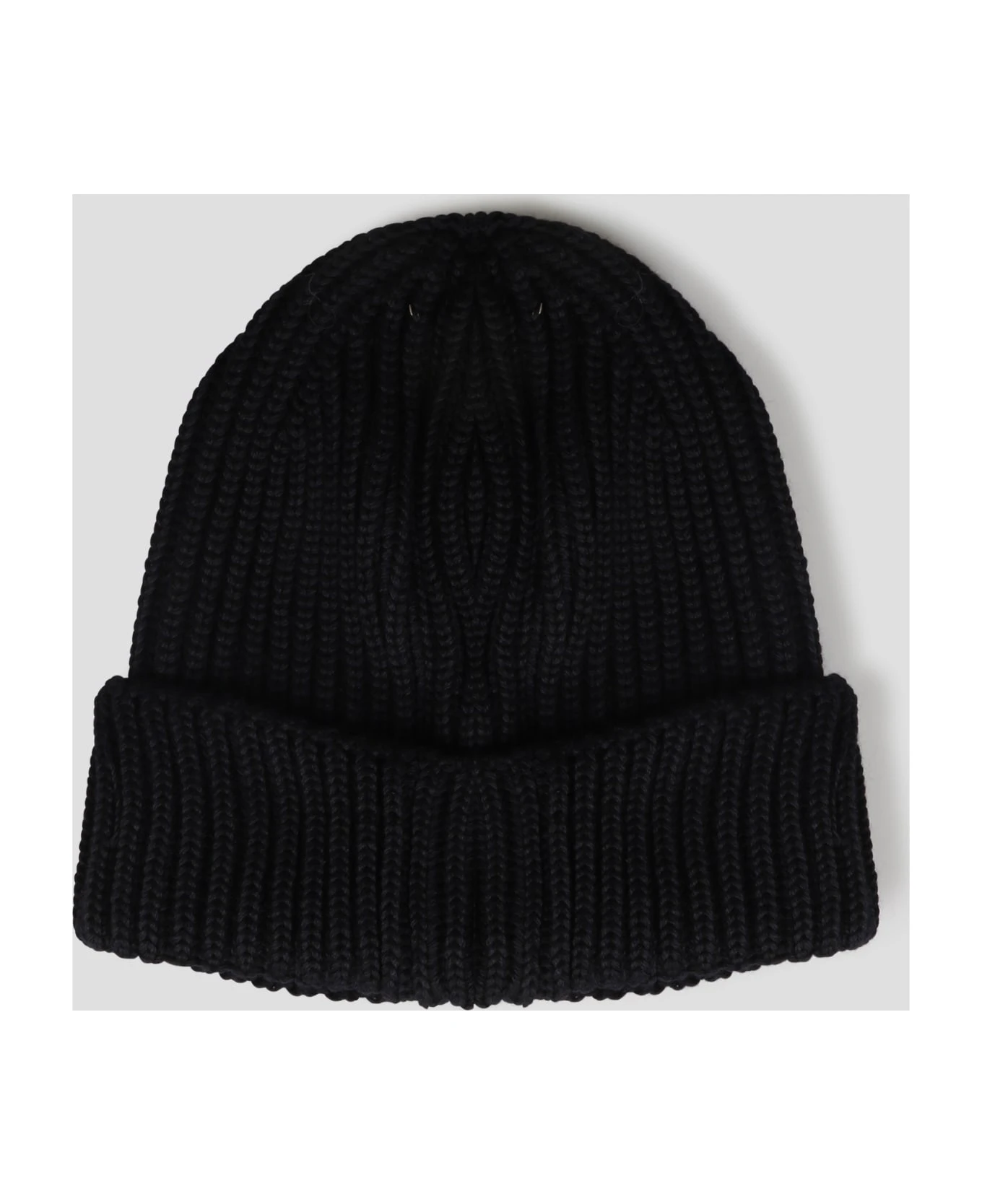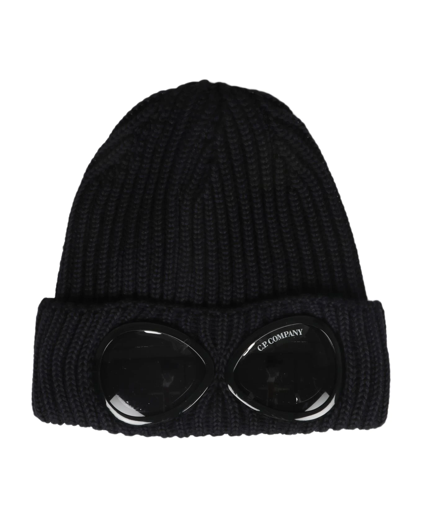 C. P. Company ribbed merino wool beanie with iconic lenses on the front. – FW23