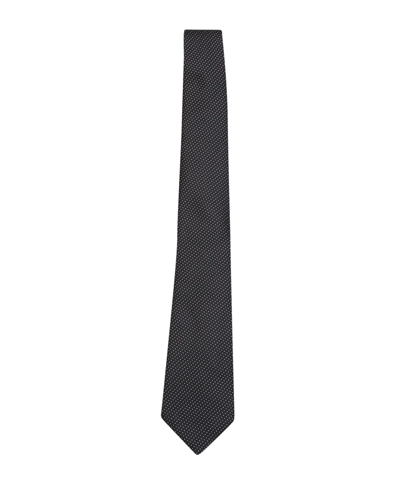 Pointed tip. Regular fit. All-over polka dot motif. Tone-on-tone stitching. Color: black