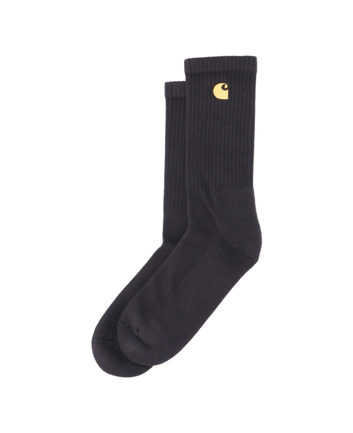 Carhartt WIP ‘Chase’ Logo Socks, cotton blend, black, ribbed,logo embroidery detail in yellow.