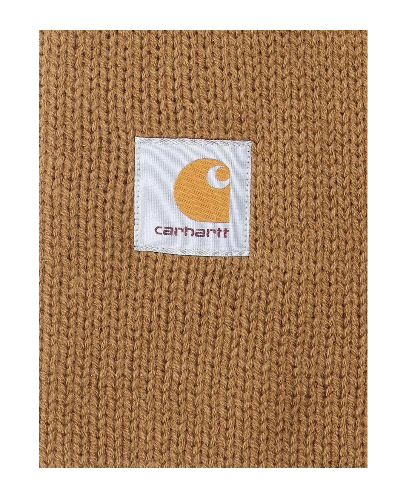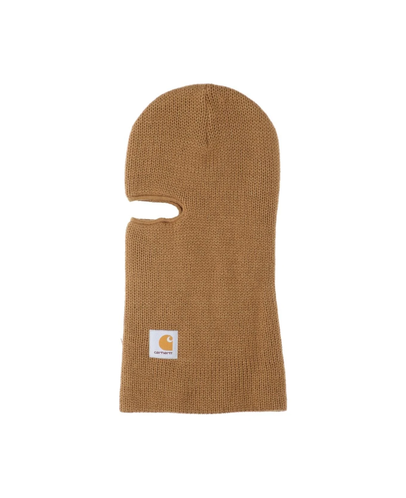 Carhartt WIP ‘Storm’ Balaclava, beige knit, side logo label applique, ribbed knit.