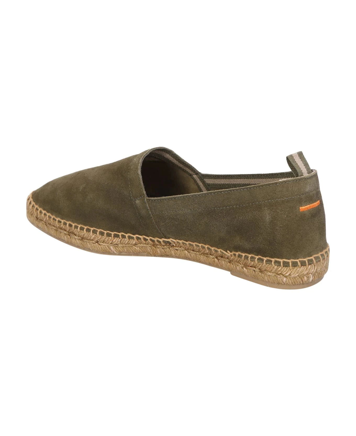 Almond toe. Slip on style. Pull tab at the heel. Branded leather insole. Woven raffia design. Suede design. Contrasting stitching. Flat rubber sole. Color: light green