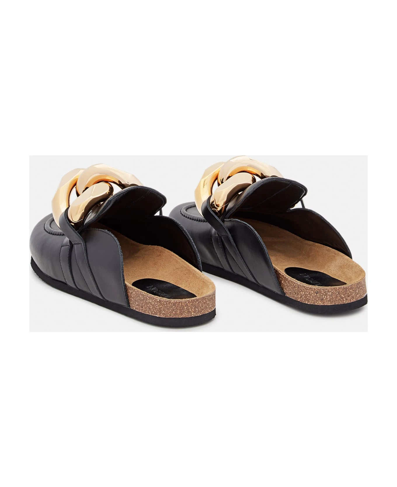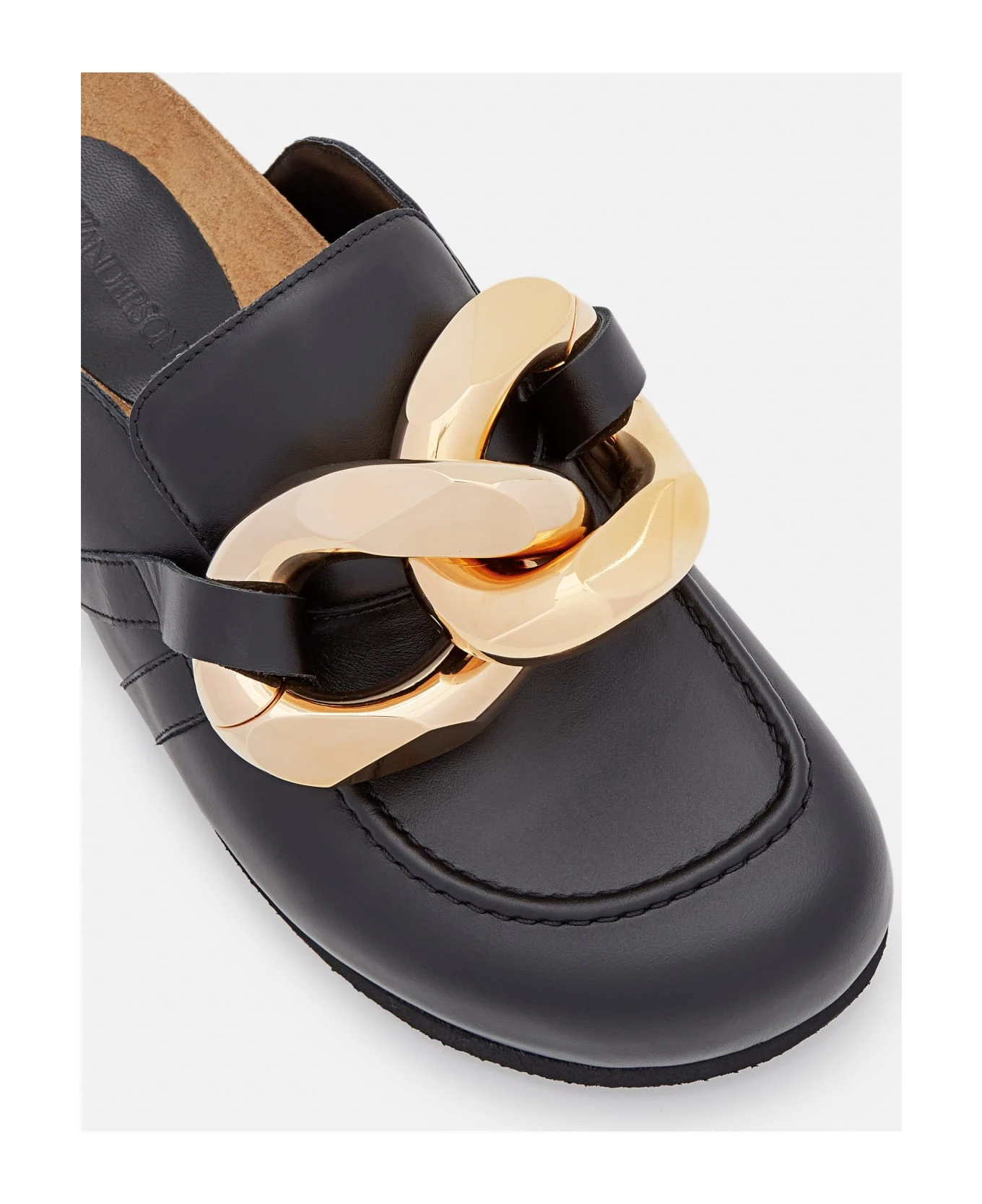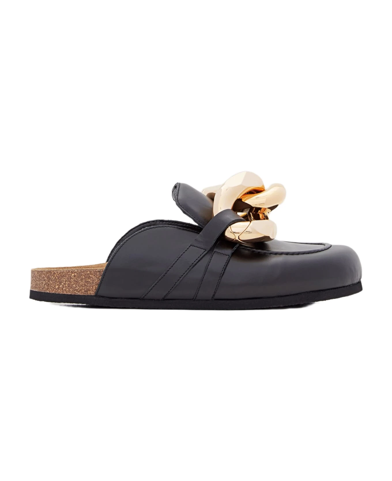 Leather upper. Rubber sole. Leather insole. Metallic chain. Colour: black.
