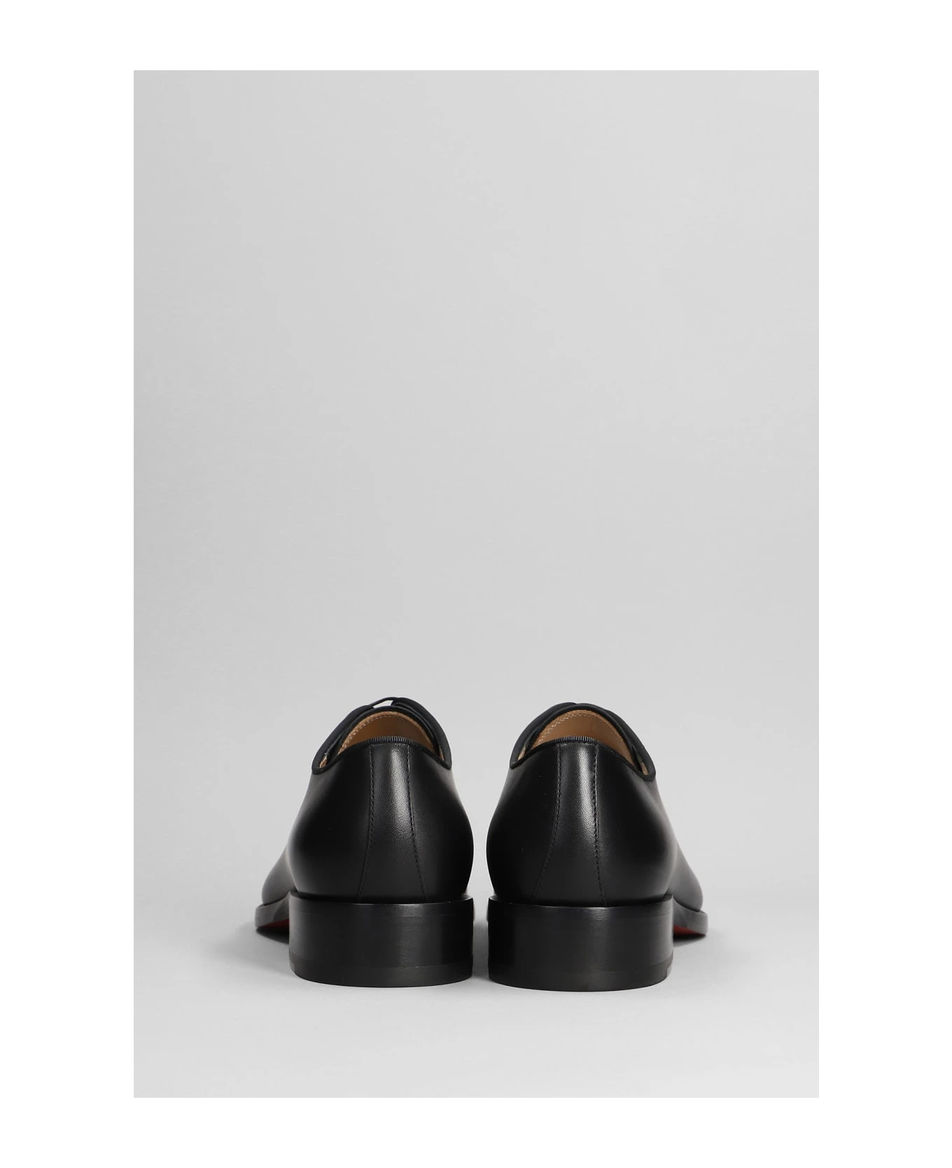 Chambeliss flat Lace up shoes in black leather, almond toe, laces, metal detail, iconic red sole, heel 3. 5 mm, Made in Italy, 100% leather