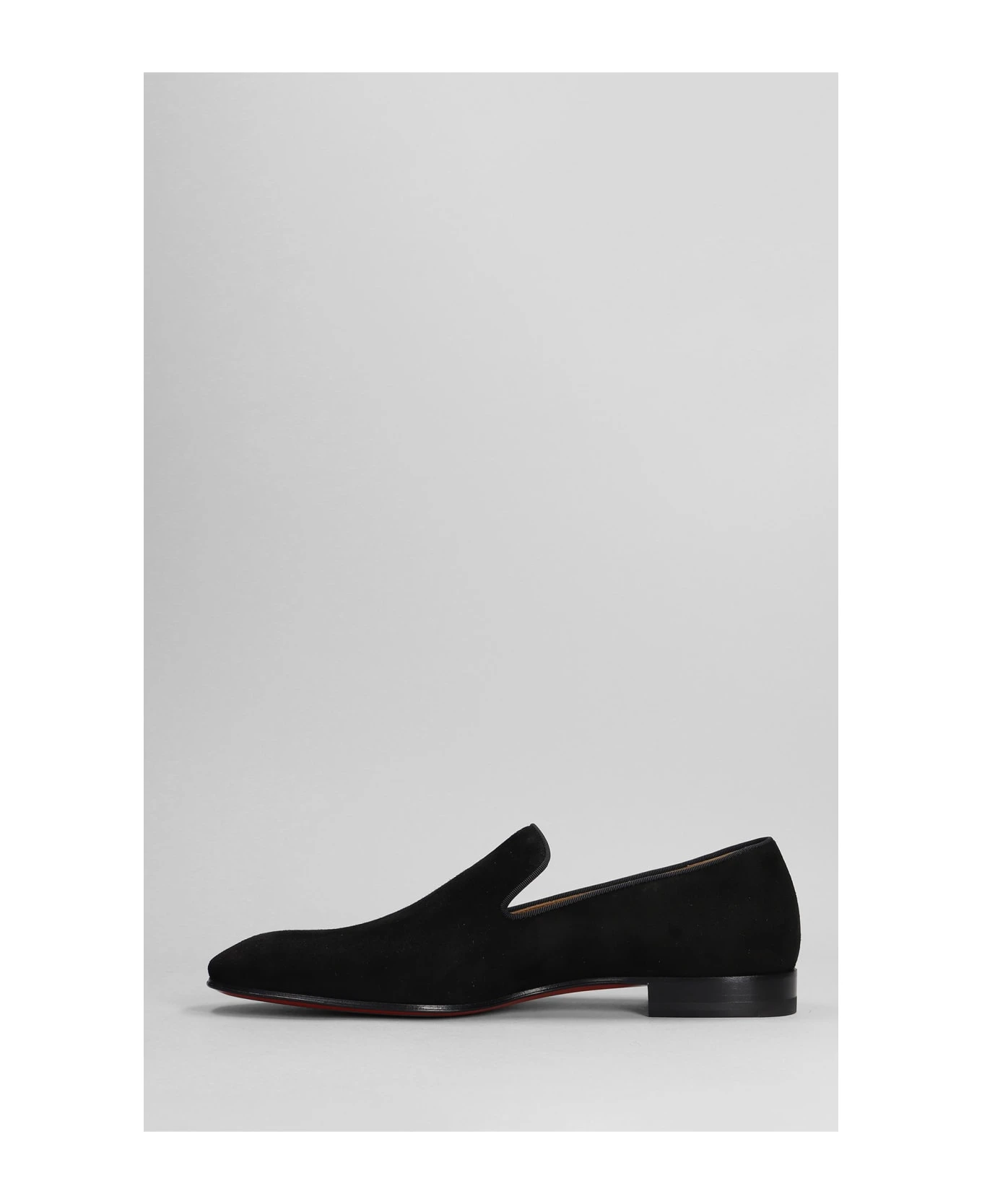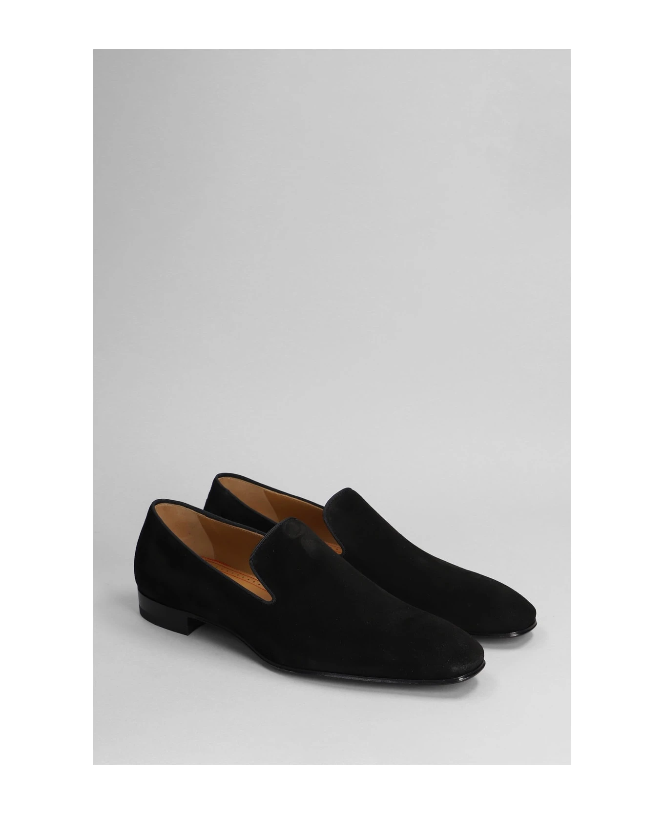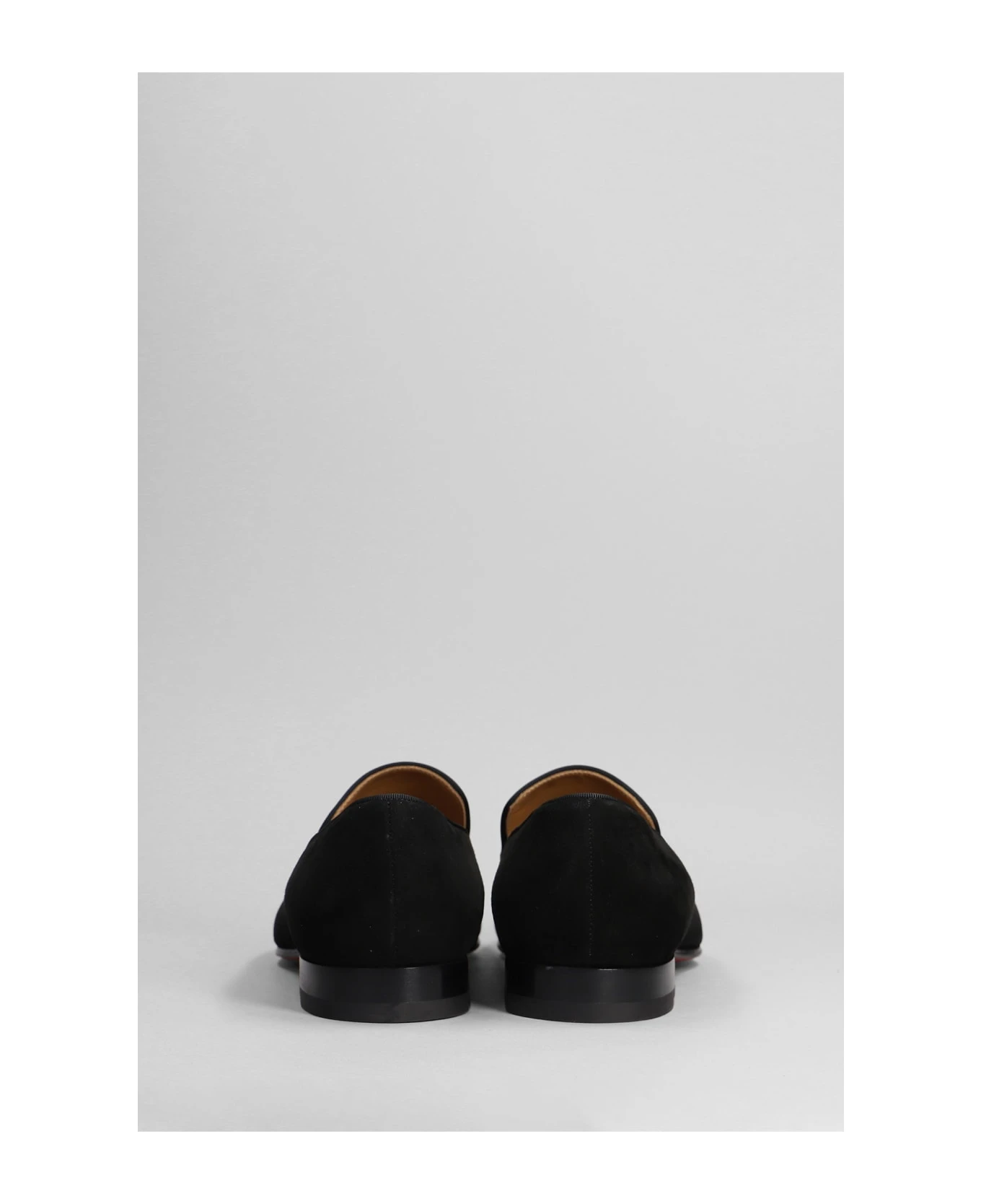 Dandelion flat Loafers in black suede, slip on, almond toe, ribbed edges, iconic red sole, leather sole, heel 25 mm, Made in Italy