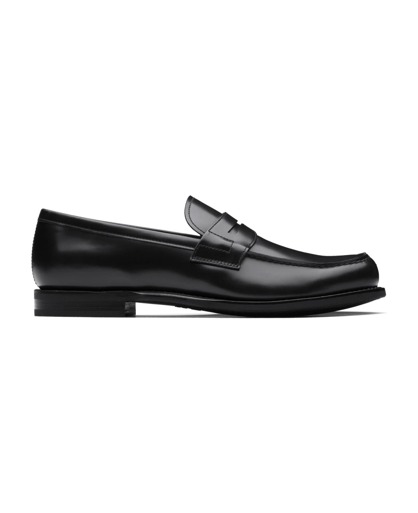 Gateshead Bright Calf Leather Loafer Black with hand stitch detail to sides, Heel buttress details, folded neckline for maximum comfort, rubber sole, Leather lining for longevity of wear, Handwritten shoe info to walnut leather lining, Church s crest to sock and sole
