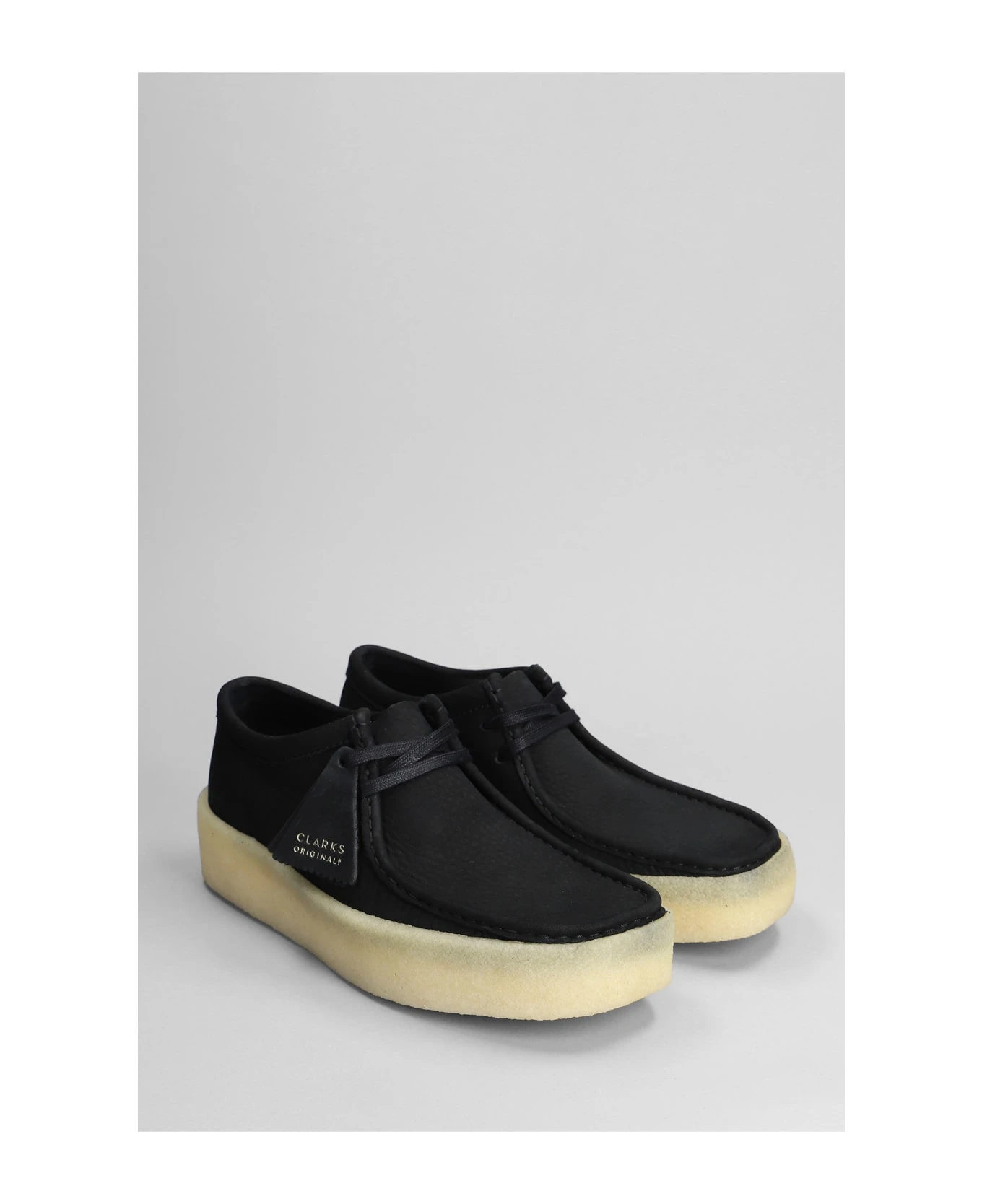 Wallabee Cup Lace up shoes in black nubuck, laces, rubber outsole, tag logo detail, 100% suede, Made in Vietnam