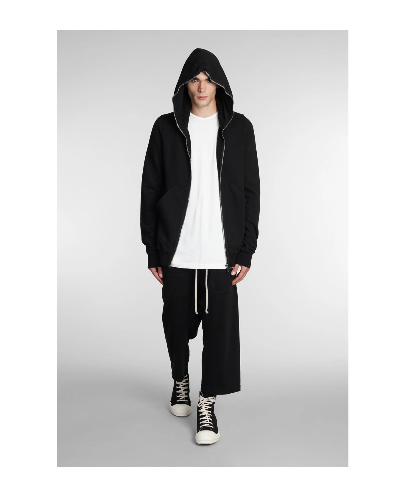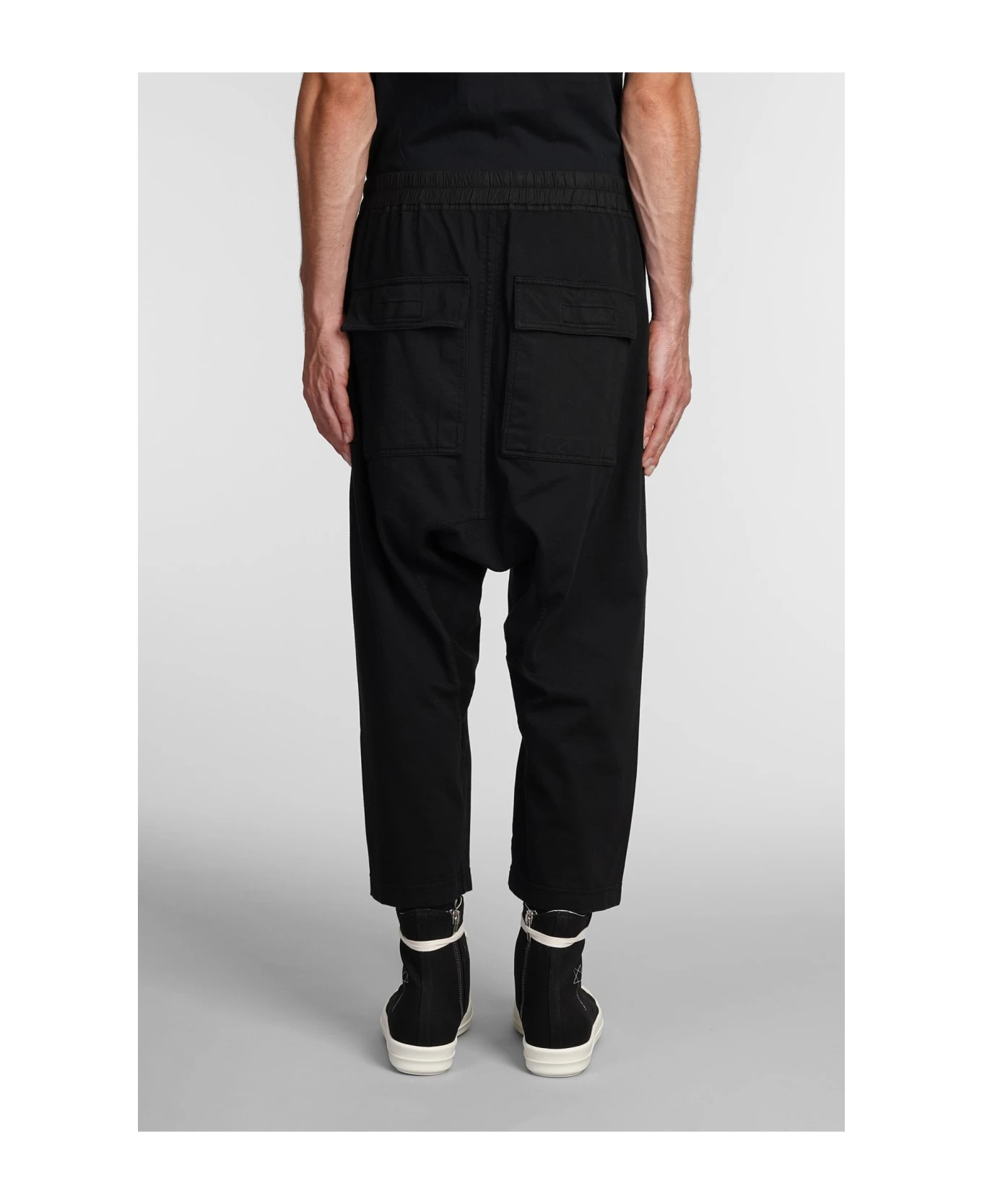 Classic cargo crop Pants in black cotton, elastic waist, Drawstring laces, four pockets, 100% cotton, Made in Italy, Model is 1. 83 and wears size S