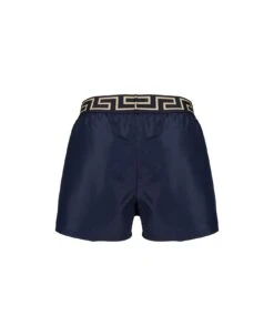 Versace Blue Swim Trunks With Greca And Medusa Head Print On Elastic Waistband In Nylon Man