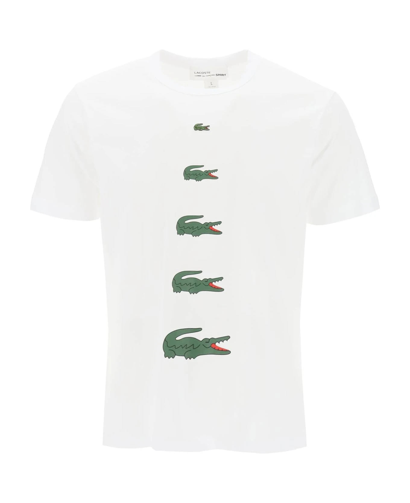 T-shirt from the Comme des Gar?ons Shirt x Lacoste collection, made from pure cotton jersey with progressive triple crocodile print on the front. It features micro-ribbed crew neck. Branded with the iconic crocodile patch at chest. Regular fit. The model is 187 cm tall and wears size L.