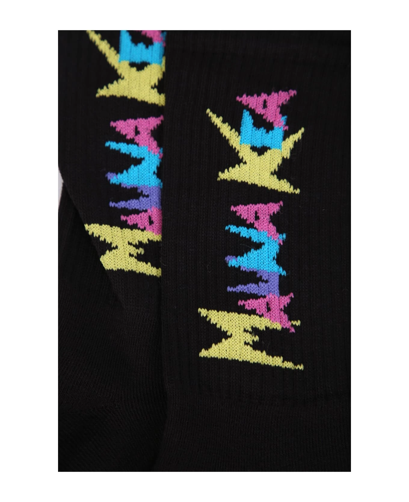 Knit construction. Stretch cotto. Ribbed trim. Embroidered logo. Color: black/ multicolor