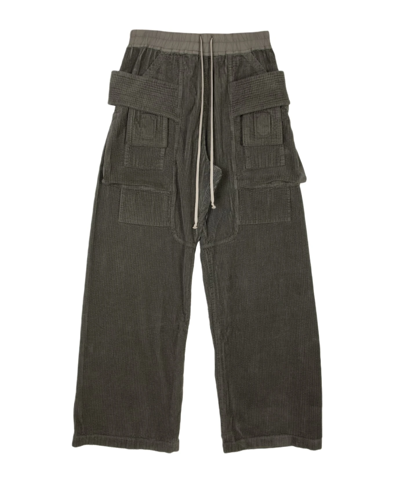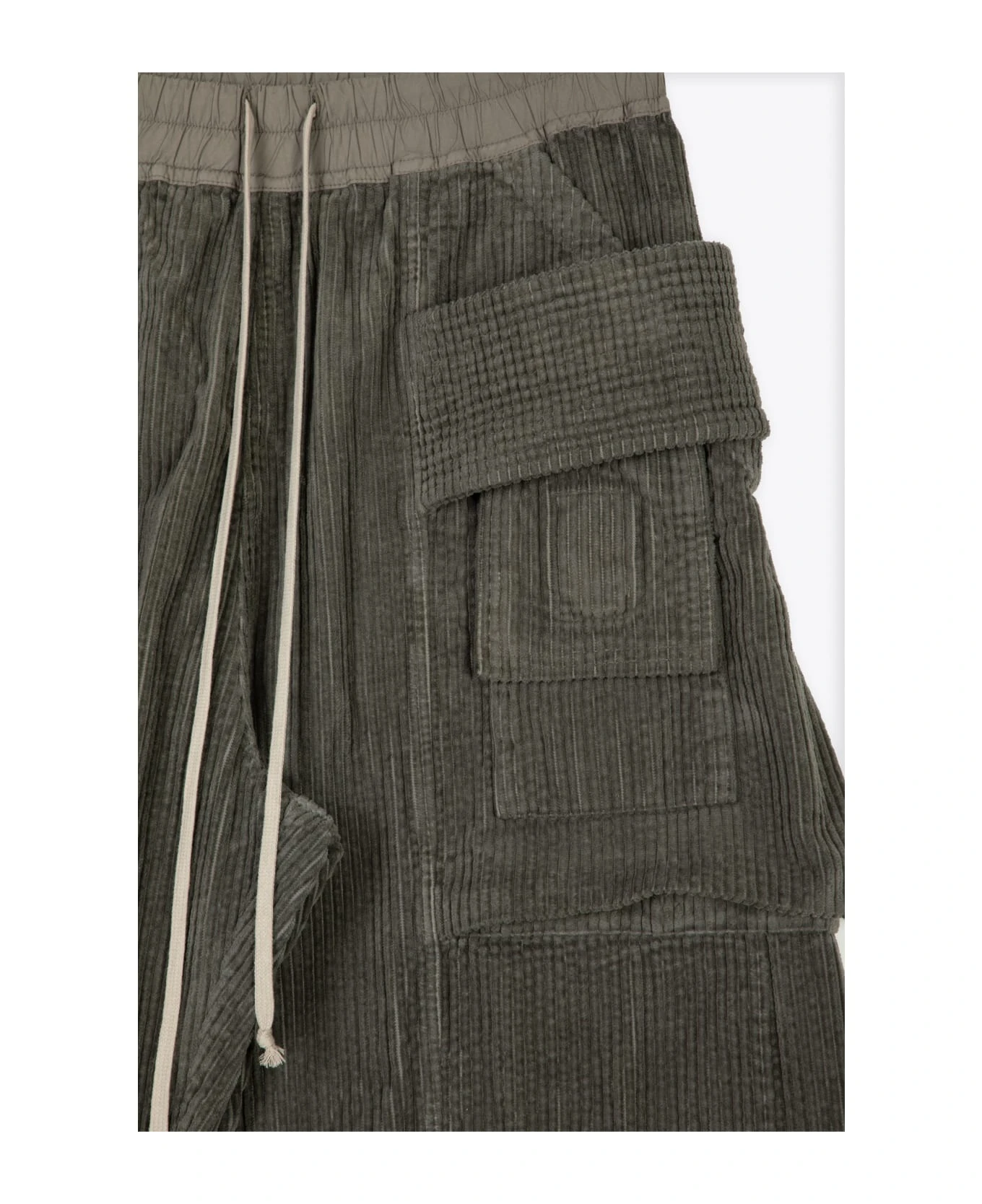 Petrol blue corduroy cargo pant with elastic waistband and drawstring. Two side pockets with band detail. Two back pockets with flap and velcro. Wide leg fit. Composition: 100% cotton. Made in italy.