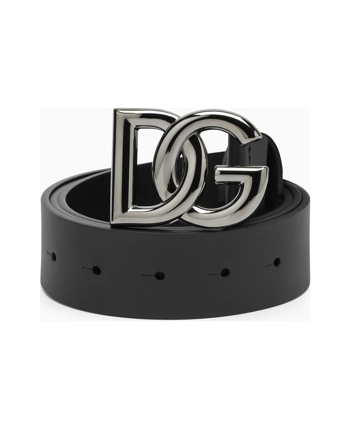 Belt by Dolce & Gabbana in black leather, featuring rutenium logo buckle.