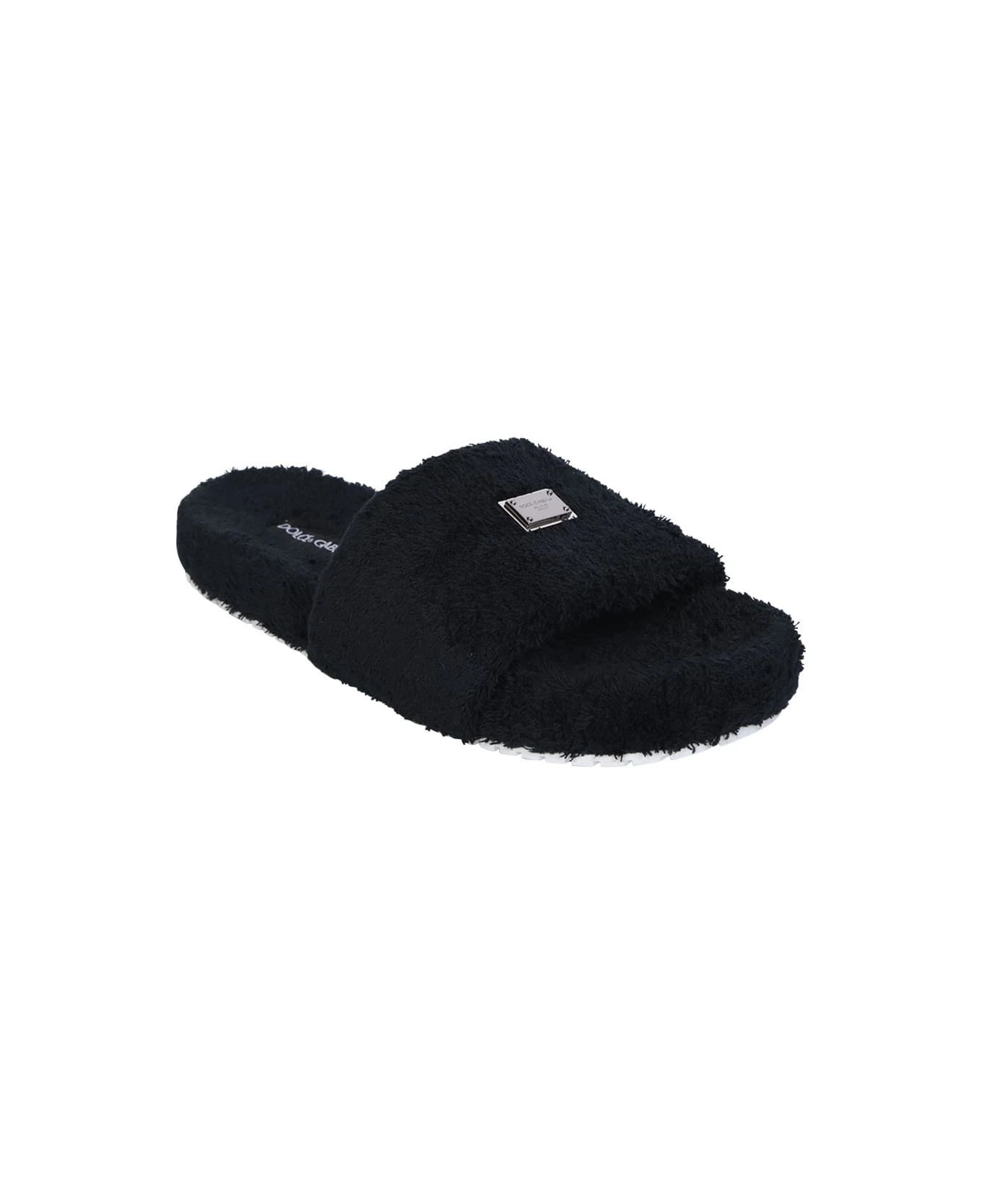 Roundtoe. Open toe. Slip on design. Sponge design. Logo sole. Patch logo tag. Color: black
